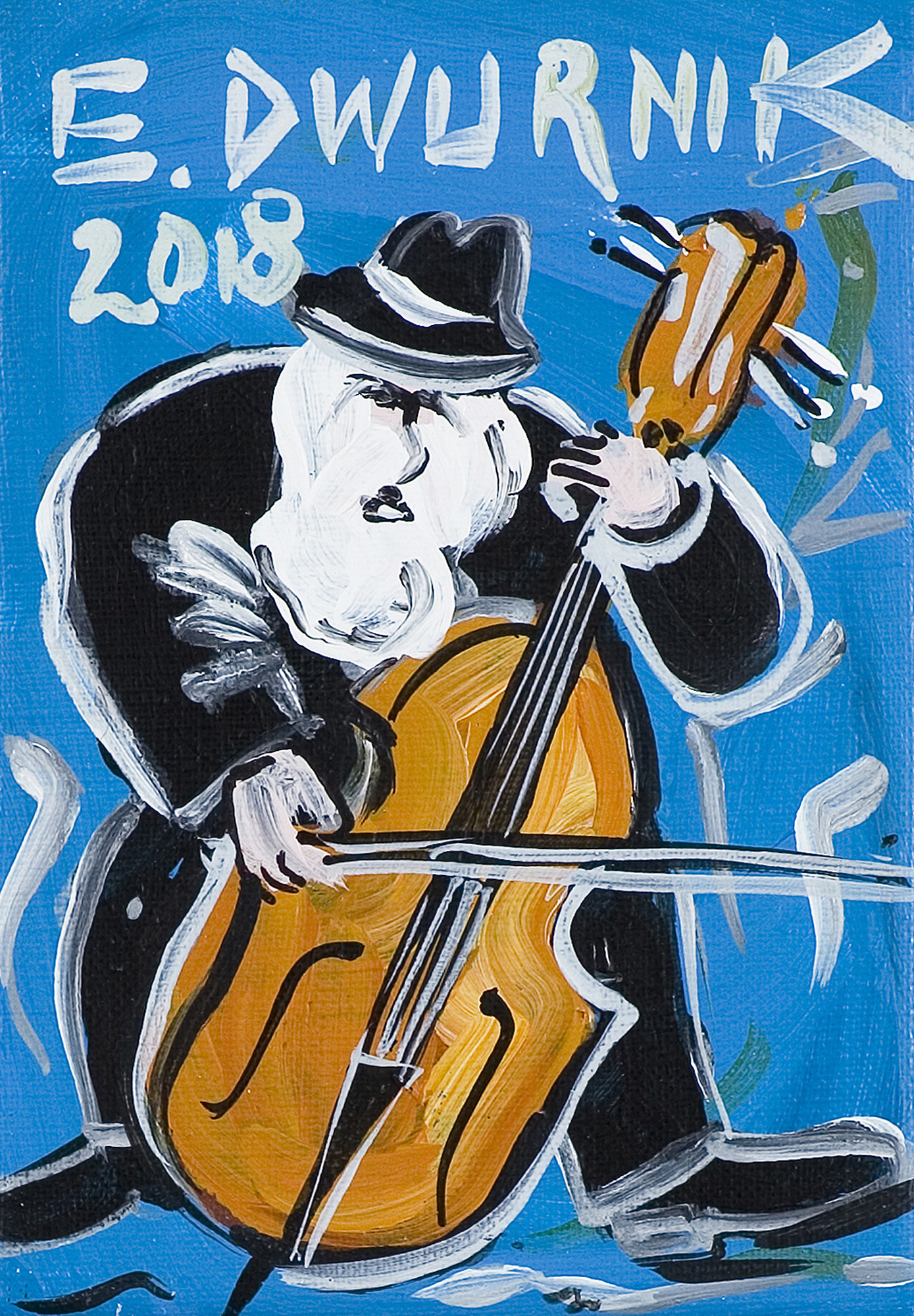 Edward Dwurnik (Radzymin 19 IV 1943 - Warszawa 28 X 2018) studiował malarstwo w ASP w Warszawie (1963-1970), jednak jako swego „mistrza“ wymienia Nikifora. Jego to prace, zobaczone po raz pierwszy w 1965, zainspirowały ówczesnego studenta III roku do narysowania pierwszych prac z cyklu „Podróże autostopem“, które kontynuował w nastepnych latach. W 1972-1978 powstawał cykl „Sportowcy“, w którym portretowane były, dodajmy - kąśliwie, typowe postaci z lat 70. Równolegle od 1975 powstawał cykl „Robotnicy“, który kulminował w okresie „Solidarności“ 1980-1981. Za prace z tego cyklu Dwurnik otrzymał w 1981 Nagrodę Krytyki Artystycznej im. Cypriana Kamila Norwida, natomiast za obrazy z cyklu „Warszawa“ (1981), proroczo zapowiadające stan wojenny - Nagrodę Kulturalną „Solidarności“ podziemnej w 1983. W latach 80. malarstwo Dwurnika przybrało wyraz ekspresyjny i dramatyczny. Powstające w tej dekadzie obrazy miały niejednokrotnie wymowę polityczną, przybierały też kostium historyczny, tak czy inaczej odnoszący się do współczesnych spraw i realiów. Cykl „Droga na Wschód“ (1989-91) upamiętniał ofiary stalinizmu, natomiast cykl „Od Grudnia do Czerwca“ (1990-94) - ofiary stanu wojennego. Zarówno ideowe, jak i czysto malarskie walory tych prac przyniosły artyście ogromne uznanie, zarówno w kraju jak i za granicą. Jego wyrazem była prestiżowa nagroda Fundacji Coutts & Co w Zurychu (1992). W latach 90. powstają cykle będące kontynuacją „Podróży autostopem“: „Niebieskie miasta“ (od 1993) i „Diagonale“ (od 1996), jak również kompozycje nowego typu, jak widoki morskie (cykl „Błękitne“, 1992-93) czy cykl „Wyliczanka“ (1996-99). Artysta wiele wystawia, miał ok. 100 wystaw indywidualnych w Polsce i za granicą, brał też udział w licznych wystawach i festiwalach krajowych i międzynarodowych, m.in.: X Biennale Sztuki Współczesnej, Menton 1974, Documenta 7, Kassel 1982, 5th Biennale, Sydney 1985, XIX Biennale Sztuki, Sao Paulo 1987; Olimpiada Sztuki, Seul 1988. Równolegle z malarstwem uprawiał rysunek, collage, grafikę warsztatową (litografia, techniki metalowe, kserografia, stemple) i użytkową (ilustracja, plakaty do własnych wystaw indywidualnych).
