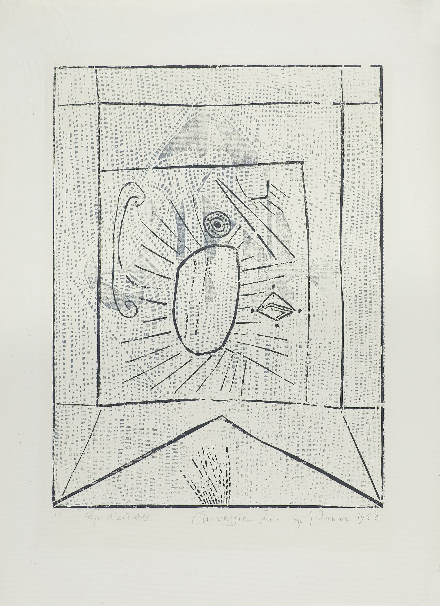 Jerzy Panek (Tarnów 1918 - Kraków 2001) odbył studia graficzne w Państwowym Instytucie Sztuk Plastycznych w Krakowie (1937-1939). Kontynuował je w Kunstgewerbeschule (1940-1942), a następnie na Wydziale Malarstwa ASP w Krakowie (1945-1948, dyplom 1955). W 1955 odbył podróż do Chin. Przez rok uczył rysunku i malarstwa na Wydziale Form Przemysłowych ASP w Krakowie (1967-1968). Od początku lat 50. skupił się na technice drzeworytu, którą traktował niekonwencjonalnie, mianowicie jako okazję do pracy na pograniczu rzeźby. Klocki drzeworytnicze Panka odznaczały się nie tylko wielkimi rozmiarami, ale i tym, że ich "powierzchnie drukujące" zredukowane były do syntetycznych, oszczędnych zarysów kształtów na szerokich obszarach bieli. Tematyka jego drzeworytów obracała się wokół ludowych, wiejskich i małomiasteczkowych spraw i klimatów. Artysta szczególnie chętnie portretował zwierzęta. Jako grafik zyskał międzynarodową renomę i wiele nagród. W latach 70. zajął się w szerszym zakresie malarstwem, tworząc serie "Autoportretów", nacechowanych rubaszną autoironią.