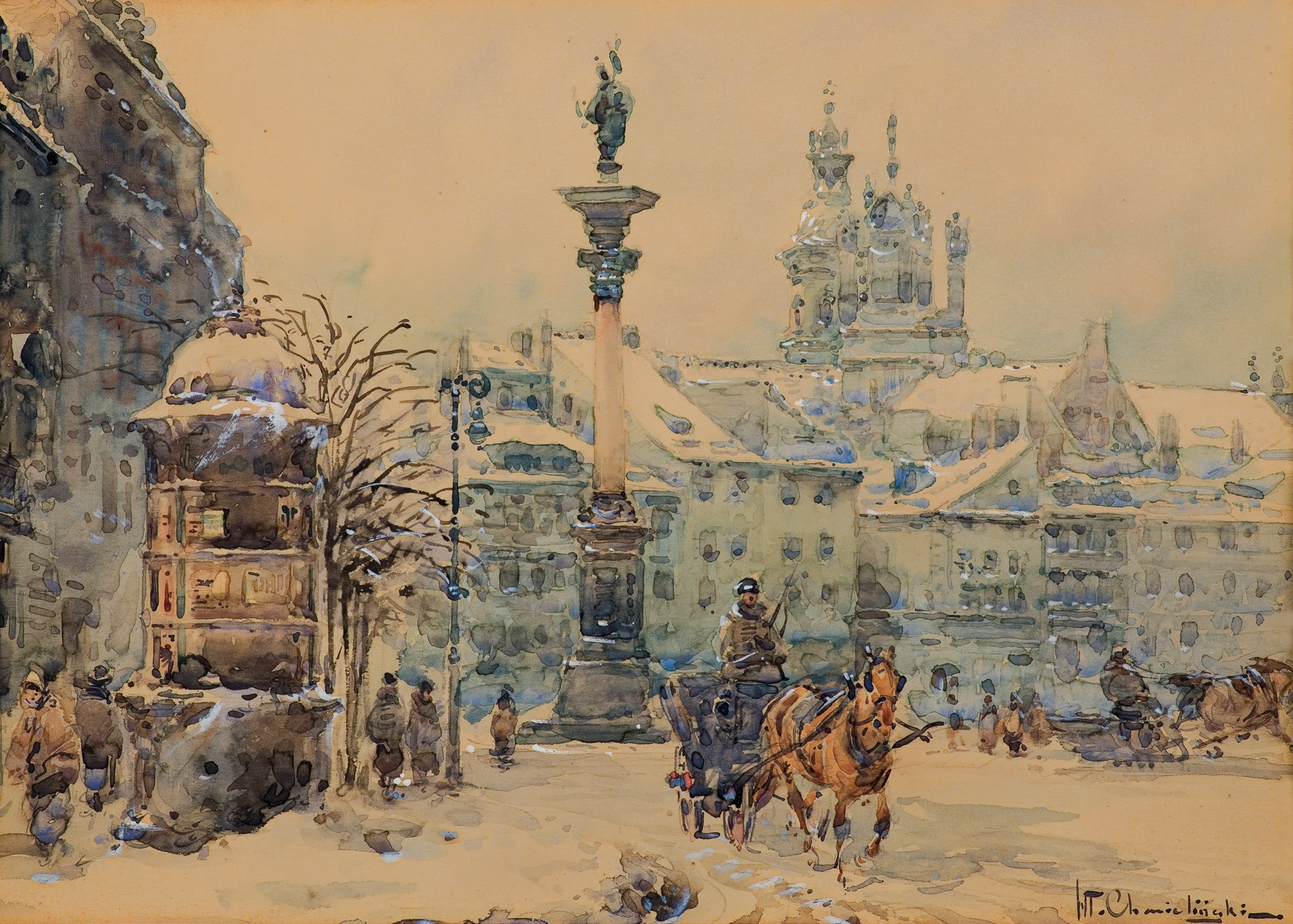 Władysław Chmieliński (Warszawa 1911 - Warszawa 1979) był malarzem związanym z Warszawą, gdzie stale mieszkał i pracował. W latach 1926-1931 studiował w warszawskiej Miejskiej Szkole Sztuk Zdobniczych i Malarstwa (dawna Klasa Rysunkowa). Wiodącym tematem jego obrazów były widoki miejskie, malowane olejno i akwarelą. W latach 1935-1938 stworzył cykl akwarel przedstawiających obiekty polskiej architektury; wśród nich, widoki Sandomierza, Krakowa, Kazimierza nad Wisłą, a także wnętrza zabytkowych kościołów czy pałaców, m.in. Zamku Królewskiego w Warszawie i Pałacu w Wilanowie. Malował także pejzaże i wiejskie sceny rodzajowe – kuligi, sanny, zaprzęgi, wesela, konie na tle krajobrazu. W latach 1967-1969 wyjeżdżał na dłuższe pobyty do Danii. W latach 1936-1939 artysta używał także pseudonimu „Władysław Stachowicz”.