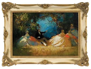 Walter Heimig (Wesel 1880 - Bad Ems 1955) - niemiecki malarz i litograf; studiował w ASP w Düsseldorfie u profesorów Clausa Meyera i Eduarda von Gebhardta. Później kształcił się jeszcze w Paryżu. W czasie I wojny światowej służył w armii na froncie wschodnim. W tym czasie wykonał wiele rysunków o zabarwieniu humorystycznym. Od 1907 uczestniczył w Wielkich Berlińskich Wystawach Sztuki, w dorocznych wystawach w Düsseldorfie, wystawiał też w Glaspalast w Monachium, w Kolonii, Wiesbaden, Stuttgarcie. Malował obrazy ołtarzowe do kościołów, m.in. Chrystusa Ukrzyżowanego do kościoła w Vohl-Marienhagen. Malował także barwne pejzaże, mariny, akty i sceny figuralne, w tym charakterystyczne damy w krynolinach, obrazy wyróżniające się wyrafinowanym kolorytem, będące dalekim nawiązaniem do osiemnastowiecznego malarstwa weneckiego (Pietro Longhi). Obrazy artysty znajdują się, m.in. w zbiorach muzeum w Düsseldorfie.