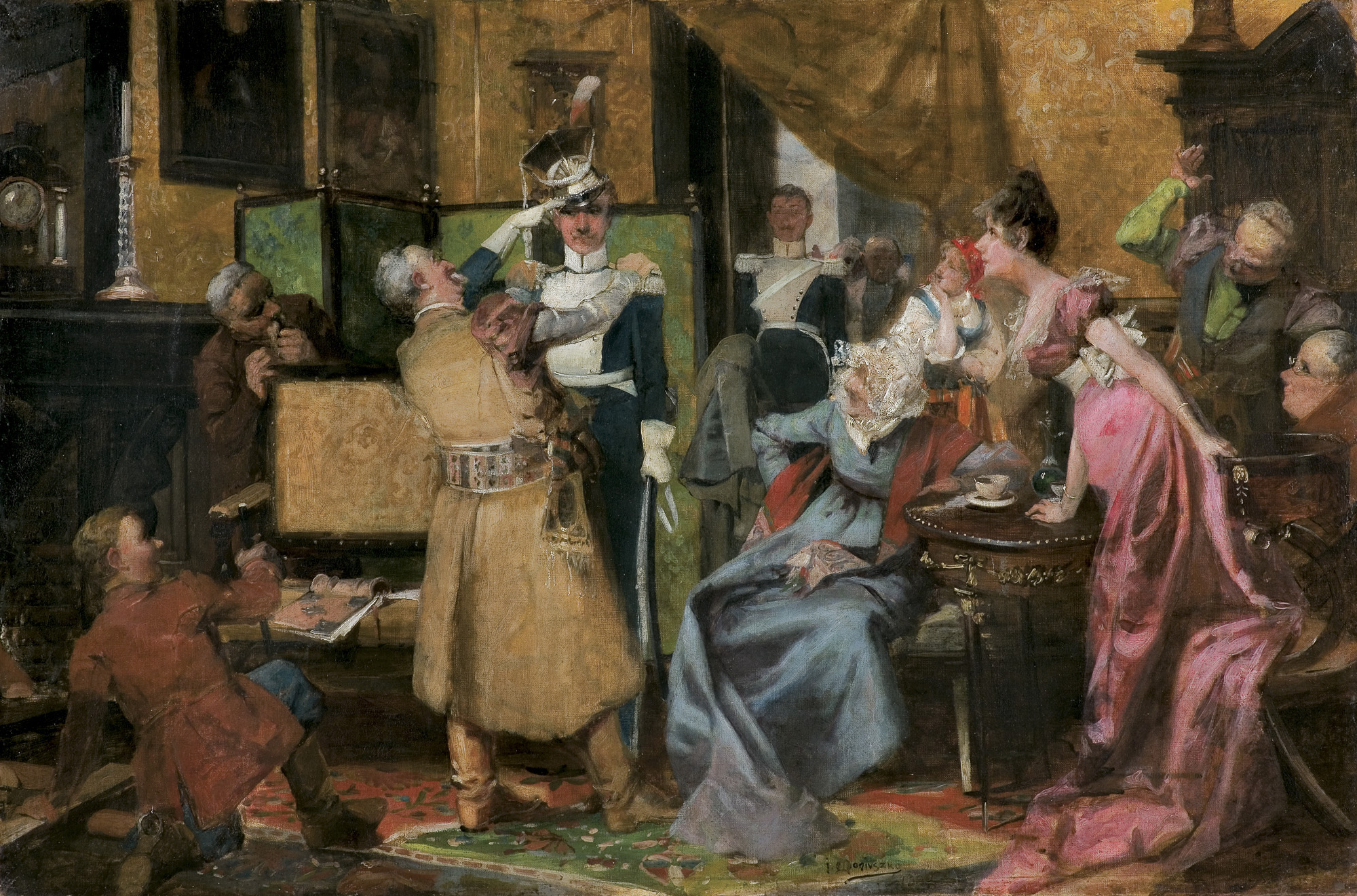 Jan Czesław Moniuszko (Wilno 1853 - Warszawa 1908) - syn kompozytora Stanisława - od roku 1871 uczył się malarstwa w warszawskiej Klasie Rysunkowej u Wojciecha Gersona i Antoniego Kamińskiego, a także prywatnie u Gersona i B.Dziadulewicza. W roku 1878 studiował w Akademii Sztuk Pięknych w Petersburgu. Od 1880 stale mieszkał i pracował w Warszawie. Malował sceny rodzajowe, historyczne, historyczno-rodzajowe i religijne. Jego dzieła wyróżniają się dobrą kompozycją, barwnością, wyczuciem nastroju i stylu epok historycznych, przy czym najbliższe były mu czasy stanisławowskie. Debiutował w roku 1879 na wystawie w warszawskiej Zachęcie, zwracając uwagę krytyki obrazem Pierwsze spotkanie Jadwigi z Jagiełłą. Później jeszcze wielokrotnie wystawiał w Zachęcie, w Salonie Krywulta, Salonie Ungra i Salonie Artystycz-nym gdzie w roku 1905 odbyła się zbiorowa wystawa jego prac (ok. 50 obrazów). Wystawiał także w Krakowie, w Łodzi i w Kijowie.