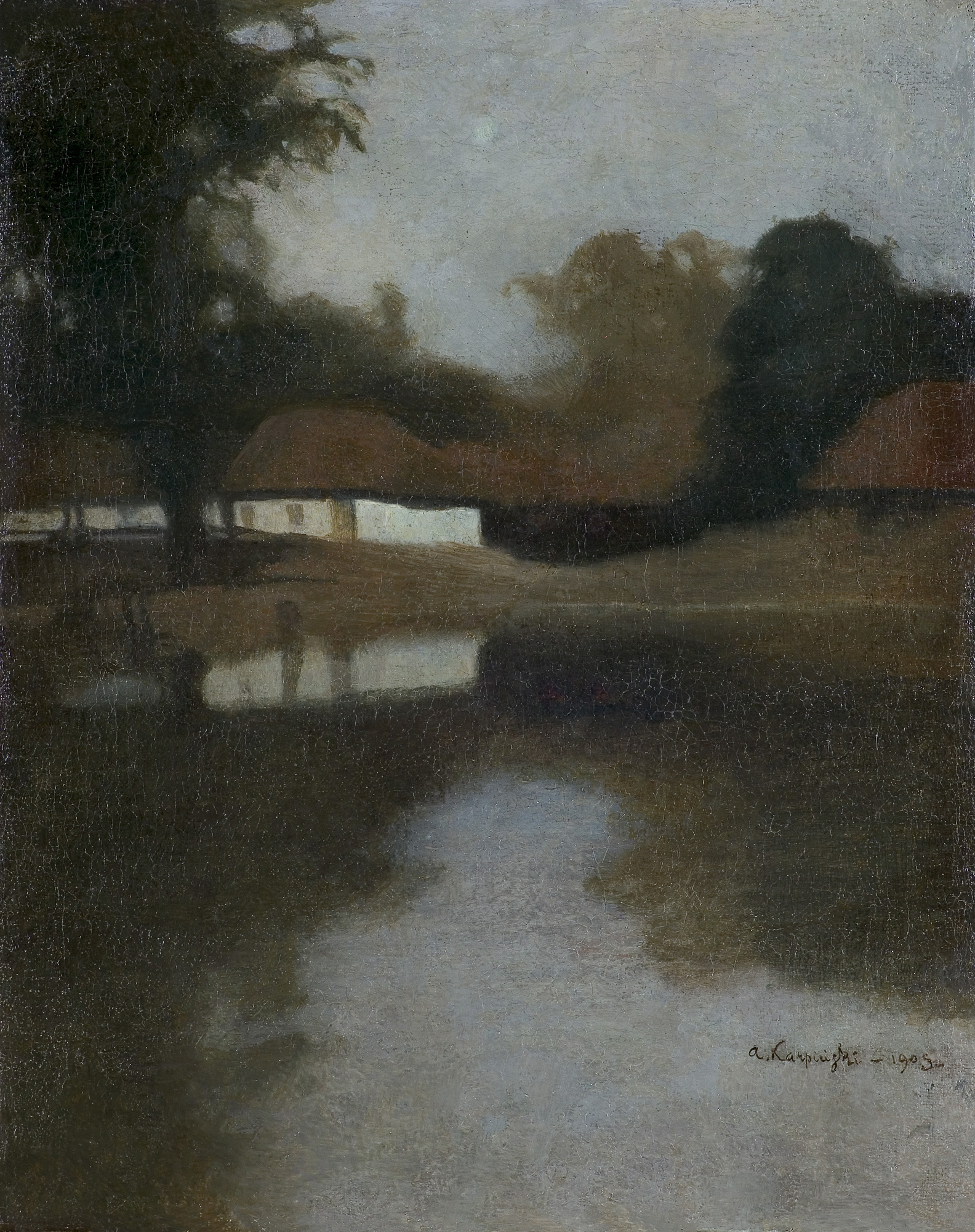 Alfons Karpiński (Rozwadów, dziś dzielnica Stalowej Woli 1875 - Kraków 1961) w latach 1891-1899 studiował w krakowskiej Szkole Sztuk Pięknych pod kierunkiem Floriana Cynka, Izydora Jabłońskiego, Władysława Łuszczkiewicza i Leona Wyczółkowskiego, a następnie kształcił się jeszcze u Antona Ažbégo w Monachium (1903), u Kazimierza Pochwalskiego w Wiedniu, a od 1907 także w Paryżu. Podróżował do Włoch i Londynu. Stale mieszkał w Krakowie; związany z tamtejszym środowiskiem skupionym wokół „Zielonego Balonika” projektował dekoracje do przedstawień kabaretu. Należał do Tow. Artystów Polskich „Sztuka”, grupy „Zero”, był członkiem wiedeńskiego stowarzyszenia „Secesja” i krakowskiego TPSP. Uczestniczył w wielu wystawach w kraju i za granicą. W czasie I wojny światowej służył w armii austriackiej. Na bogatą twórczość artysty składają się wczesne sceny rodzajowe z podkrakowskiej wsi, pejzaże i portrety, wśród nich zwłaszcza portrety kobiece, które przyniosły mu szczególną popularność. Z czasem głównym – obok portretu – tematem jego obrazów stały się martwe natury z kwiatami, dekoracyjne kompozycje o stonowanej gamie barwnej. Artysta zajmował się także grafiką i ilustratorstwem.