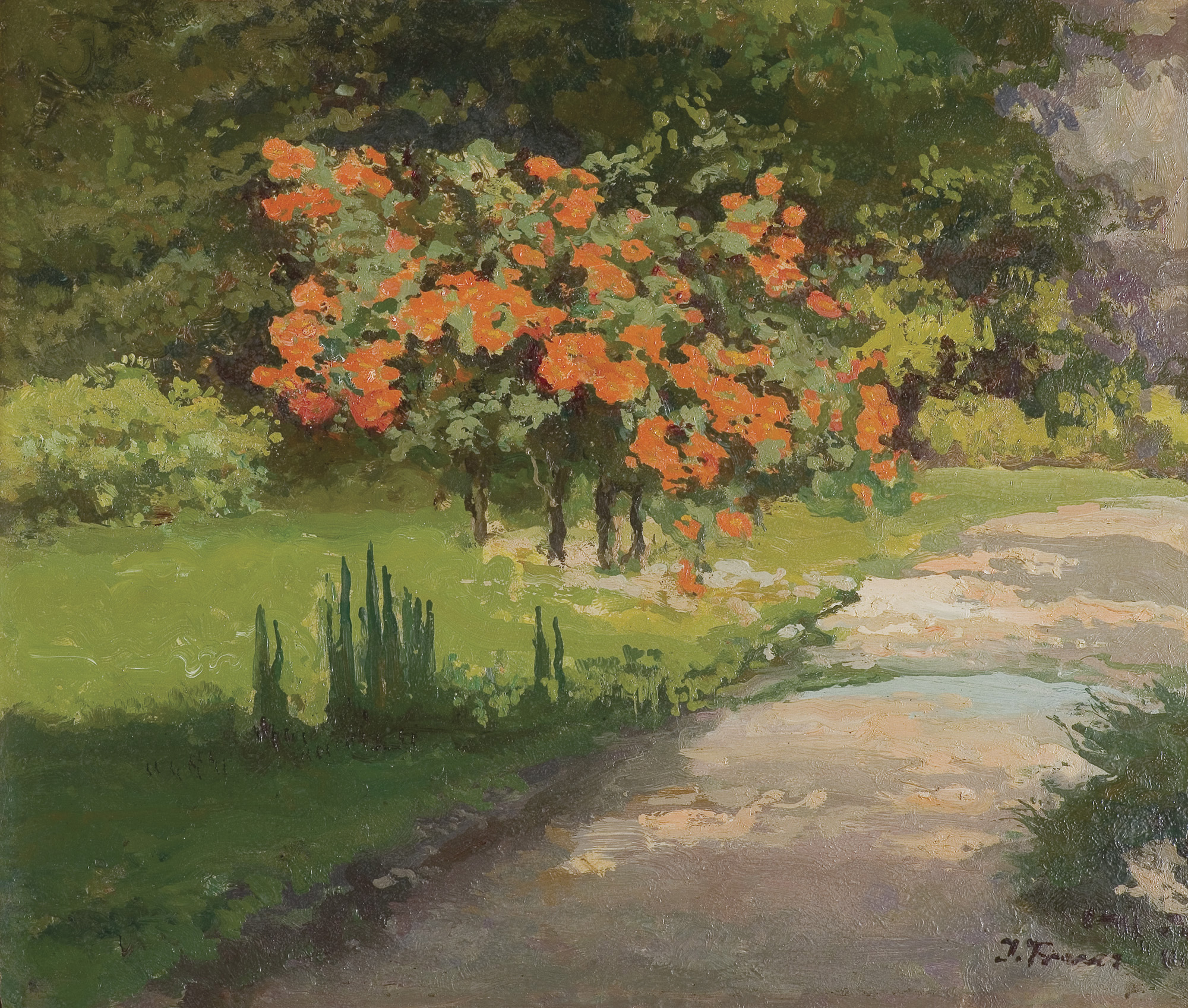 Iwan Trusz (Wysocko 1869 - Lwów 1941) studiował w Krakowskiej Szkole Sztuk Pięknych u I. Jabłońskiego, W. Łuszczkiewicza, J. Unierzyskiego, L. Loefflera, a w latach 1895-97 także u L. Wyczółkowskiego i w pracowni pejzażu J. Stanisławskiego. W 1894 wyjechał do Wiednia i jako wolny słuchacz przez kilka tygodni uczęszczał do tamtejszej ASP. W 1897 równie krótko uczył się w prywatnej szkole A. Ažbego w Monachium. Po studiach wiele podróżował - dwukrotnie, w 1902 i 1908 był we Włoszech, później też w Palestynie i Egipcie, w 1901 i 1902 jeździł na Krym, podróżował po Ukrainie. Stale mieszkał we Lwowie, gdzie w dawnym domu artysty znajduje się obecnie poświęcone mu muzeum. Był przede wszystkim pejzażystą - malował krajobrazy z dalekich podróży oraz nastrojowe pejzaże z Ukrainy. Tworzył także portrety i rodzajowe sceny o tematyce huculskiej. Uprawiał ilustratorstwo, współpracował z ukraińskim teatrem we Lwowie. Zajmował się krytyką artystyczną, pisując artykuły do ukraińskich czasopism „Buducznist“, „Literaturno-Naukowyj Wistnik“, „Artystycznyj Wistnik“ i pracując przy ich redakcji.