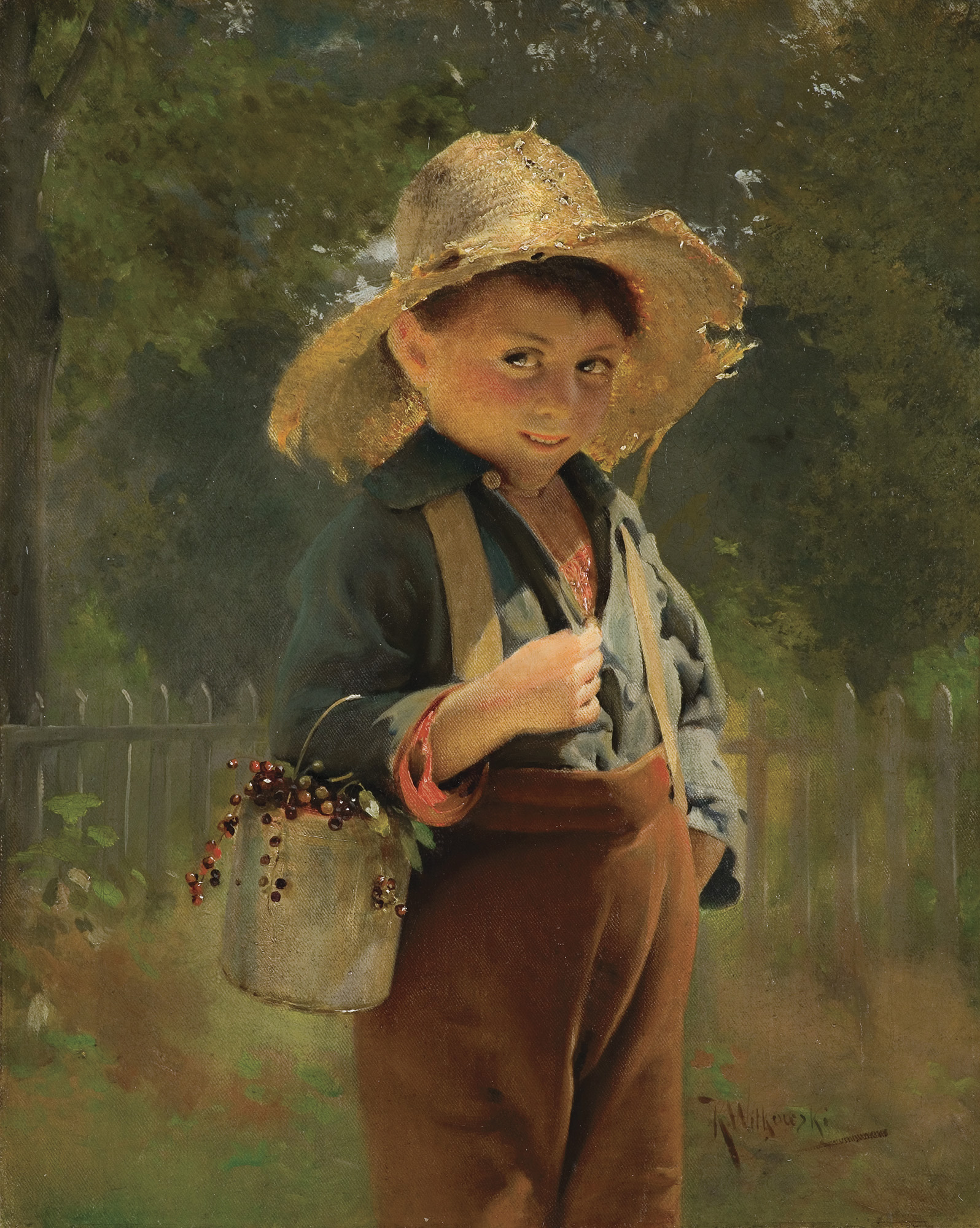 Karol Dominik Witkowski (Jazłowiec 1860 - Newark, New Jersey 1910) - malarz portretów i scen rodzajowych z dziecięcymi bohaterami. W Stanach Zjednoczonych, gdzie spędził połowę życie znany jest jako Karl Witkowski. Pochodził z Jazłowca na Ukrainie, szkołę ukończył w Czortkowie. Wcielony do armii austriackiej, rysował portrety oficerów, portretował m.in. księcia Wilhelma Wirtemberskiego, dowódcy XI Korpusu we Lwowie. W 1881 krótko kształcił się w Szkole Sztuk Pięknych w Krakowie pod kierunkiem Jana Matejki. W 1882 podjął studia w Akademii Sztuk Pięknych w Monachium. Następnie – w 1884 – wyjechał do Nowego Jorku, skąd po trzech latach przeniósł się do Paryża, gdzie studiował jeszcze w Acádemie Julian, a malowane wówczas obrazy wystawiał w paryskich galeriach. W 1889 wrócił do Stanów Zjednoczonych i zamieszkał w Newark, czasowo przenosząc się do pobliskich Irvington i Vaisburg. Malował cenione powszechnie portrety, ale prawdziwą, szeroką popularność przyniosły mu sentymentalne a równocześnie realistyczne obrazy przedstawiające dzieci z ulic Newarku (Czyścibut, Pierwszy papieros, Gazeciarz, Bańki mydlane). Swoje obrazy kilkakrotnie pokazywał na wystawach w Nowym Jorku w latach 1891-1910. Pojawiały się także w różnych galeriach i na aukcjach sztuki. Wiele z nich wydano w formie dużych reprodukcji. Większa liczba obrazów artysty znajduje się w Muzeum w Newark.