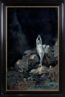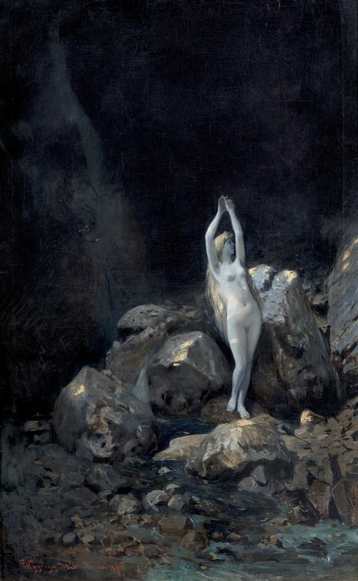 Feliks Michał Wygrzywalski (Przemyśl 1875 - okolice Rzeszowa 1944) w latach 1893-98 studiował w ASP w Monachium pod kierunkiem J.C.Hertericha i K.Marra. Studia uzupełniał w Académie Julian w Paryżu. Już w czasie studiów wyjeżdżał do Włoch, a po 1900 przez kilka lat mieszkał w Rzymie. W 1906 podróżował do Egiptu. W 1908 na stałe osiadł we Lwowie. W latach 1909-14 pracował w tamtejszym teatrze jako inspektor sceny. Jeszcze kilkakrotnie podróżował do Włoch. Był malarzem realistą; we wcześniejszym okresie twórczości skłaniał się ku naturalizmowi i silnej ekspresji. Dużą wagę przywiązywał do efektów świetlnych, stosował bogatą, żywą gamę barwną. We wczesnych obrazach często przedstawiał ludzką pracę (Burłacy) lub dramatyczne wydarzenia i napięcia społeczne (Strajk, Chleba nam głodnym). Malował też portrety, akty, pejzaże nadmorskie, krajobrazy z Włoch i Ukrainy. Po podróży do Egiptu w jego malarstwie powtarzały się motywy i tematy orientalne (Modlitwa Arabów, Sprzedawcy dywanów). Zajmował się dekoracyjnym malarstwem ściennym, m.in. w 1908 zaprojektował, a później wykonał alegoryczne malowidła do gmachu Izby Handlowo-Przemysłowej we Lwowie. Zajmował się grafiką, ilustrował książki i czasopisma, projektował witraże, kostiumy i dekoracje teatralne (m.in. do Peer Gynta, Irydiona, Nocy listopadowej).