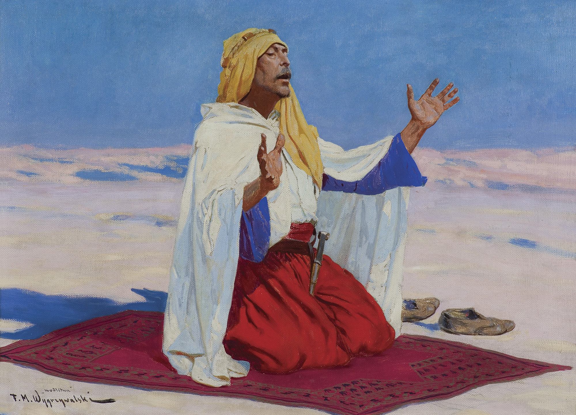 Feliks Michał Wygrzywalski (Przemyśl 1875 - okolice Rzeszowa 1944) w latach 1893-98 studiował w ASP w Monachium pod kierunkiem J.C.Hertericha i K.Marra. Studia uzupełniał w Académie Julian w Paryżu. Już w czasie studiów wyjeżdżał do Włoch, a po 1900 przez kilka lat mieszkał w Rzymie. W 1906 podróżował do Egiptu. W 1908 na stałe osiadł we Lwowie. W latach 1909-14 pracował w tamtejszym teatrze jako inspektor sceny. Jeszcze kilkakrotnie podróżował do Włoch. Był malarzem realistą; we wcześniejszym okresie twórczości skłaniał się ku naturalizmowi i silnej ekspresji. Dużą wagę przywiązywał do efektów świetlnych, stosował bogatą, żywą gamę barwną. We wczesnych obrazach często przedstawiał ludzką pracę (Burłacy) lub dramatyczne wydarzenia i napięcia społeczne (Strajk, Chleba nam głodnym). Malował też portrety, akty, pejzaże nadmorskie, krajobrazy z Włoch i Ukrainy. Po podróży do Egiptu w jego malarstwie powtarzały się motywy i tematy orientalne (Modlitwa Arabów, Sprzedawcy dywanów). Zajmował się dekoracyjnym malarstwem ściennym, m.in. w 1908 zaprojektował, a później wykonał alegoryczne malowidła do gmachu Izby Handlowo-Przemysłowej we Lwowie. Zajmował się grafiką, ilustrował książki i czasopisma, projektował witraże, kostiumy i dekoracje teatralne (m.in. do Peer Gynta, Irydiona, Nocy listopadowej).