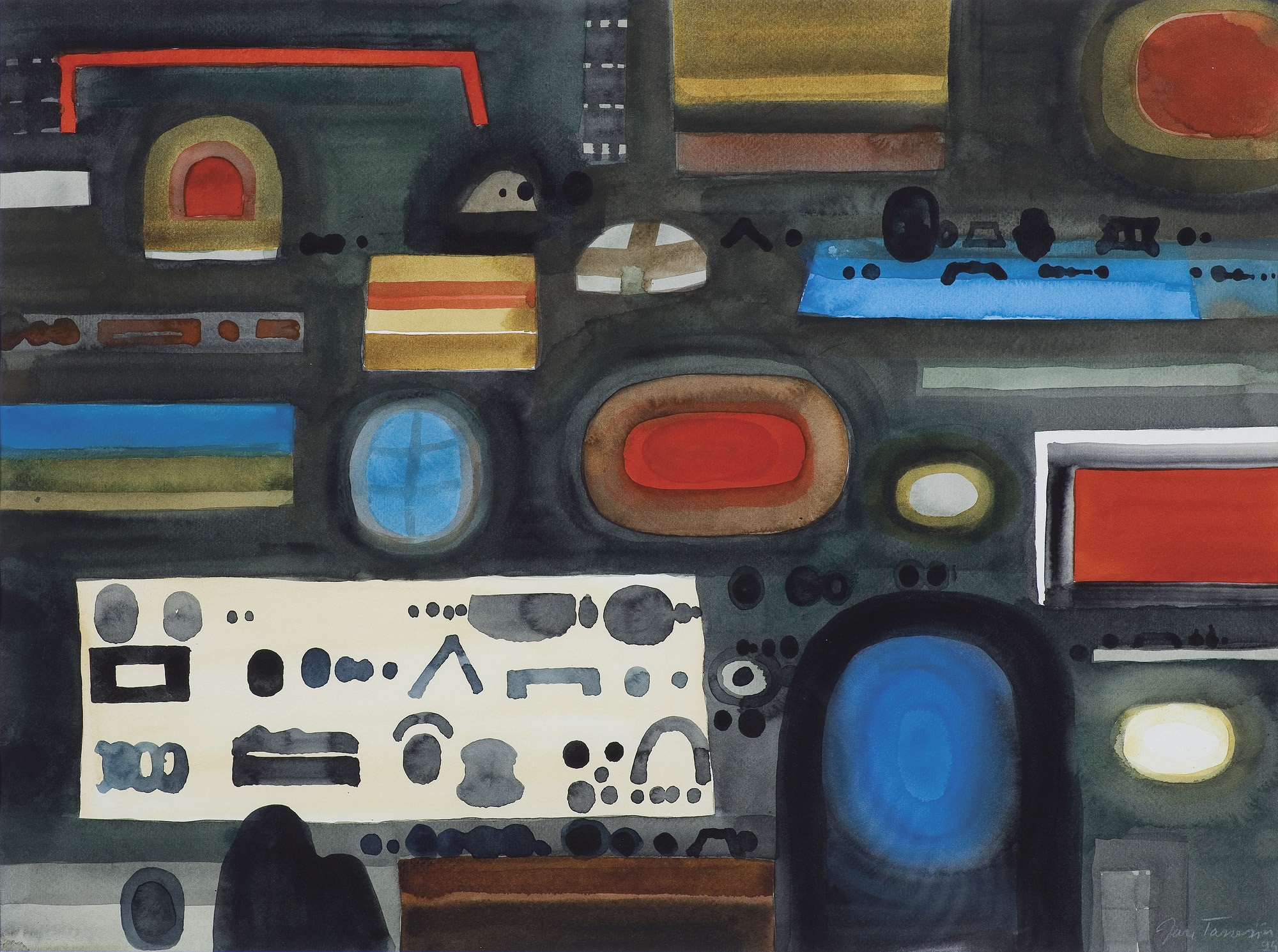 Jan Tarasin (Kalisz 11 IX 1926 - Warszawa 8 VIII 2009) studiował malarstwo w ASP w Krakowie pod kierunkiem prof. Zbigniewa Pronaszki (1946-1951). Jeszcze jako student zadebiutował na I Wystawie Sztuki Nowoczesnej w Krakowie w 1948/49. W połowie lat 50. stworzył cykle litografii: „Nowa Huta i jej mieszkańcy“, 1954, „Dom“, 1955). W pierwszym przeciwstawił się oficjalnemu optymizmowi, w drugim, operując symboliką martwej natury, zawarł treści egzystencjalne i odnoszące do niedawnego dramatu wojny. Po 1956 zaczął malować obrazy niefiguratywne. Układy wyodrębnionych elementów (określanych jako „przedmioty“) umieszczane były przez artystę na płaszczyźnie (cykl „Wnętrze“, 1957) ), lub w aluzyjnej przestrzeni (cykle „Uczta“, 1957, „Brzeg“, 1962-1964, „Przedmioty policzone“, od 1968, „Antykwariat“, 1968). Zasada ta utrzymuje się w jego malarstwie w następnych latach, różnice między okresami twórczości dotyczą sposobu opracowania „przedmiotów“ i ich usytuowania w przestrzeni obrazu lub wobec tła. Od lat 70. „przedmioty“ zmieniają się w graficzne, zwykle czarne znaki na jasnych tłach (cykl „Kolekcja“, od 1971). Tła z kolei bywają iluzyjnie przestrzenne, zróżnicowane walorowo, miękkie. W latach 90. artysta wrócił do kolorystycznego, bardziej malarskiego rozwiązywania zarówno znaków, jak i teł, często ciemnych lub przenikających się z „przedmiotami“ (cykl „Wylęgarnia przedmiotów“, 1992). Tarasin od 1962 jest członkiem „Grupy Krakowskiej“. W 1963-67 uczył na Wydziale Architektury Wnętrz krakowskiej ASP. W 1967 przeniósł się do Warszawy, w 1974 podjął pracę pedagogiczną na Wydziale Malarstwa ASP w Warszawie. W 1987-90 był rektorem tej uczelni. W 1976 otrzymał Nagrodę Krytyki Artystycznej im. Cypriana Kamila Norwida, w 1984 Nagrodę im. Jana Cybisa.; Nagroda na MB Sztuki w San Marino 1965. Równolegle z malarstwem zajmował się rysunkiem i grafiką - do lat 60. litografią, od 1974 serigrafią. W 1974-1981 wydał 8 autorskich „Zeszytów“ z serigrafiami i własnymi tekstami. W 1995 w Galerii Zachęta odbyła się wystawa artysty, której towarzyszył monograficzny katalog.