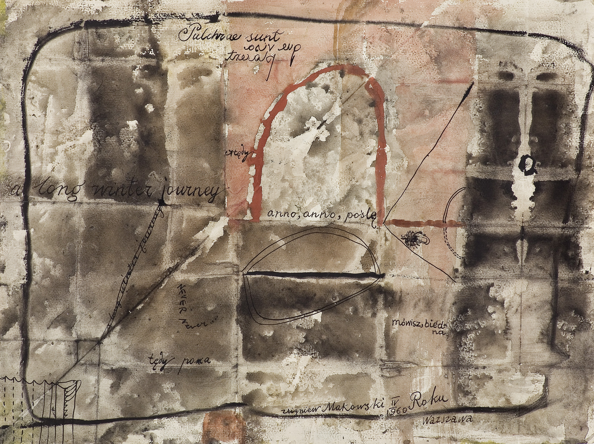 Zbigniew Makowski (Warszawa 31 I 1930 - Warszawa 19 VIII 2019) studiował w ASP w Warszawie w latach 1950-1956, dyplom uzyskał w pracowni Kazimierza Tomorowicza. Początkowo skłaniał się ku surrealizmowi - podczas pobytu w Paryżu w 1962 zetknął się z André Bretonem i międzynarodowym ruchem Phases. Jednak decydujący wpływ na wyraz jego sztuki wywarły pozamalarskie zainteresowania, jakim się oddaje. Jest literatem, poetą, erudytą, zwłaszcza zaś znawcą szerokiego spektrum filozofii i wiedzy tajemnej wielu kultur. Znawstwo to wykorzystuje w swoich pracach malarskich, rysunkowych, a także w unikatowych książkach, które własnoręcznie wykonuje na specjalnie preparowanych papierach. W swych pracach nawarstwia symbole, cytaty i znaczenia w nieczytelny, zdawałoby się, chaos. Wypada jednak wierzyć krytykom, którzy twierdzą, iż prace Makowskiego otwierają przed cierpliwym i intelektualnie przygotowanym „czytelnikiem“ świat swoistej narracji. Sam artysta zaś zwraca uwagę na „permutacyjną“ strukturę swych prac, w których rozmaite cytaty i odniesienia kulturowe przeplatają się z jego prywatną ikonografią. Tak czy inaczej, z pewnością w pracach Makowskiego da się wyróżnić pewien „alfabet“ wizualno-symboliczny, którego elementy pojawiają się w nich stale w różnych konfiguracjach. Należą doń np. takie wizerunki, jak klucz, drabina, studnia, mandala, kielich itp. Otaczają je napisy, często łacińskie, a także pojedyncze cyfry, litery, ornamenty. Określił je ktoś jako rebusy o wielkiej urodzie, które można odczytywać, można też kontemplować. Od roku 1982 artysta przestał wystawiać, ale nie tworzyć. Powstają wówczas prace będące rodzajem nowoczesnego notatnika, rozpoczętego jeszcze w latach 60., do którego artysta powraca z nowymi przemyśleniami. Artysta jest laureatem wielu nagród, m.in. Nagrody Krytyki Artystycznej im. Norwida (1973) i Nagrody im. Jana Cybisa (1992). Jego wielka kompozycja "Mirabilitas secundum diversos modos exire potest a rebus" (1973-1980) zdobi genewską siedzibę ONZ jako dar rządu polskiego.