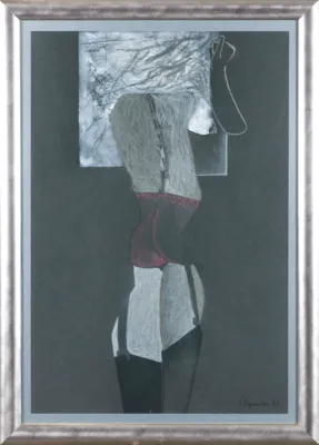Teresa Pągowska (Warszawa 12 VI 1926 - Warszawa 7 II 2007) studiowała malarstwo i techniki ścienne w PWSSP w Poznaniu w pracowni Wacława Taranczewskiego, gdzie uzyskała dyplom w 1951. W latach 1950-1964 pracowała w PWSSP w Gdańsku. Uczestniczyła w restauracji gdańskiej Starówki (1953). W 1958 wywarły na nią wpływ malarstwo i osobowość Piotra Potworowskiego. W 1964 przeniosła się do Warszawy. W latach 1971-1973 była zatrudniona w PWSSP w Łodzi, od 1973 pracowała w ASP w Warszawie. W 1988 uzyskała tytuł profesora zwyczajnego. Wystawiała od lat 50., uczestnicząc m.in. w wystawie w Arsenale w 1955, w Biennale Młodych w Paryżu 1959. W 1963 udział w wystawie „Ecole de Paris“ w Galerie Charpentier przyniósł jej honorowe członkostwo Nouvelle Ecole de Paris i grupy Realités Nouvelles. W latach 1963-1966 wystawiała na Salon de Mai w Paryżu. W 1990 otrzymała Nagrodę Fundacji im. Jurzykowskiego. Wiele podróżowała, zwiedzała, uczestniczyła w życiu artystycznym, unikając jednak wiązania się z grupami artystycznymi. Od początku twórczości, mimo dalekich niekiedy, ekspresyjnych odkształceń, pozostawała wierna figuracji. Malowała cyklami: „Dni” (lata 60.), „Monochromaty” (do 1975), „Figury magiczne” (kontynuacja poprzedniego cyklu w kolorze). Do 1995 preferowała duże formaty, w których często wykorzystywała efekt niegruntowanego płótna. Równolegle powstawały małe studia pojedynczych przedmiotów i znaków. W 1996 wyszedł monograficzny album artystki.