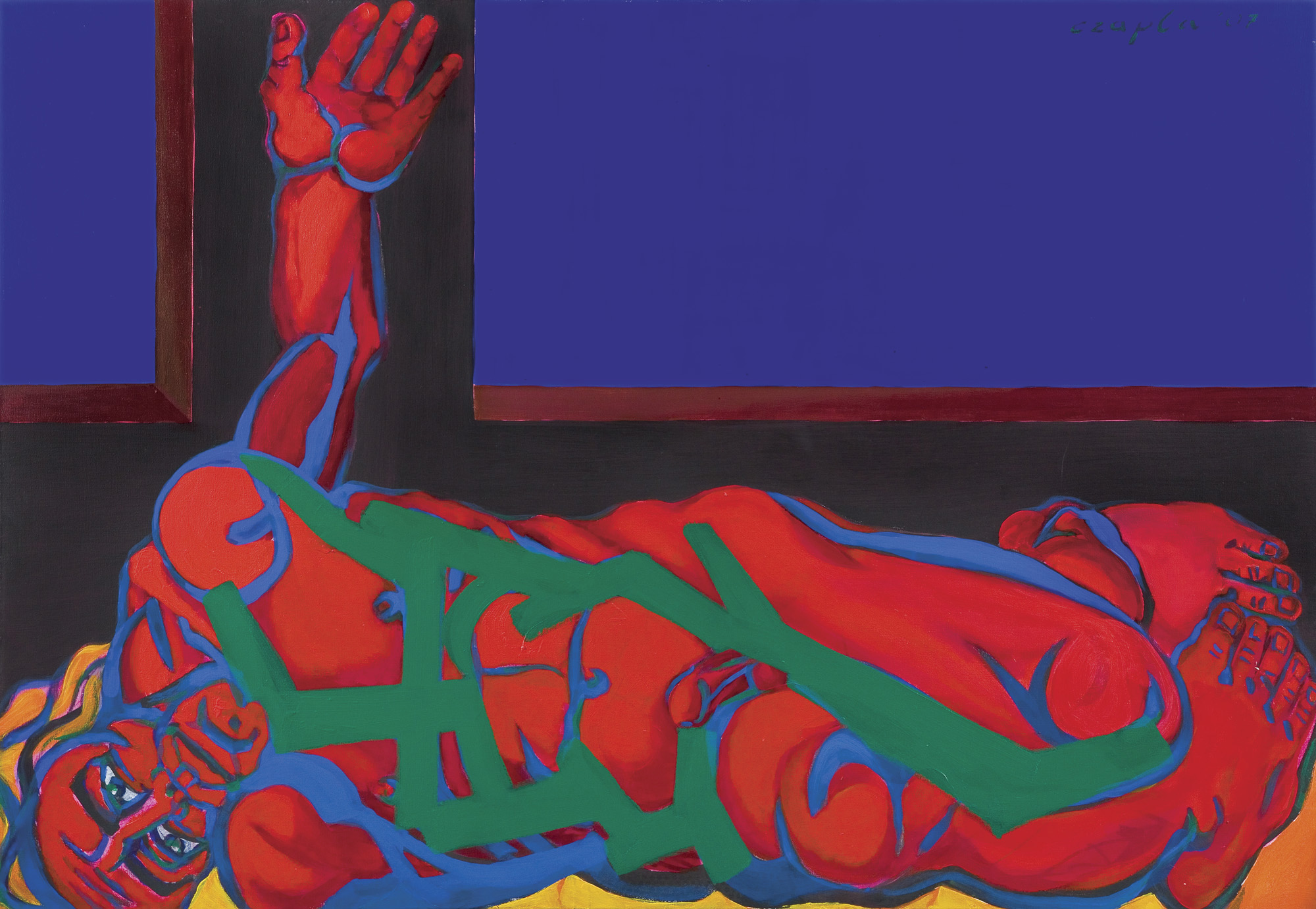 Marian Czapla (Gacki na Kielecczyźnie 28 VII 1946 - Warszawa 12 I 2016) studiował na Wydziale Malarstwa ASP w Warszawie w latach 1966-1972. Uzyskał dyplom w pracowni prof. Stefana Gierowskiego. W 1972 podjął pracę pedagogiczną w macierzystej uczelni. Od 1990 był profesorem, prowadził własną pracownię malarstwa. W latach 1974-1979 był członkiem grupy „Symplex S4“, którą tworzyło grono młodych absolwentów warszawskiej ASP, zainteresowanych możliwością kontynuowania tradycji polskiego koloryzmu z jednej, unizmu Władysława Strzemińskiego z drugiej strony. Początkowo tworzył abstrakcyjne kompozycje budowane z barwnych, zamaszyście kładzionych smug i plam. Od końca lat 70. w jego malarstwie przeważyła figuracja. Wyróżniającym się wątkiem twórczości Czapli były tematy i odniesienia religijne. Zainteresowania te pozostały aktualne w jego sztuce w latach 80., kiedy połączył je z tematyką aktualną (cykl poświęcony górnikom z „Wujka“). W pracach z lat 90. (cykle „Upadek“, „Ecce Homo“ i in.) artysta malował monumentalne figury o mocnej tektonice, podkreślonej dodatkowo zdecydowanymi barwami i konturami, ujęte w dynamicznych ruchach i skrętach ciała. Umieszczone zazwyczaj na płaskich tłach jednolitego koloru, w umownej przestrzeni, zdają się zmagać z ograniczającym je kadrem obrazu. W 2002 roku z okazji 30-lecia pracy twórczej Mariana Czapli Muzeum Narodowe w Kielcach przygotowało wystawę jego prac, której towarzyszył naukowo opracowany katalog.