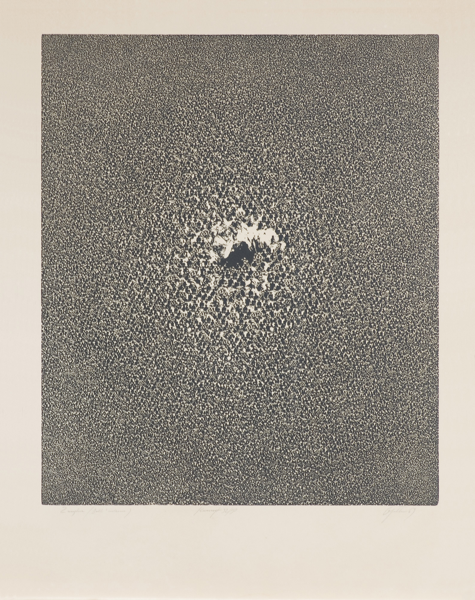 Roman Opałka (Abbéville, Francja 1931 - Rzym 2011) po przyjeździe wraz z rodziną do Polski uczył się w szkole poligraficznej w Nowej Rudzie, po czym podjął studia w Państwowej Wyższej Szkole Sztuk Plastycznych w Łodzi (1949-1950). Kontynuował je w ASP w Warszawie (1950-1956). We wczesnym okresie tworzył cykle malarskie i rysunkowe („Chronomy“, 1961-1963, „Fonematy“, 1963-1964, „Alfabet grecki“, 1965), obiekty przestrzenne („Poduszkowce“, „Integracje“, 1964-1966) oraz cykle graficzne i ilustracje. Od 1965 realizuje program „Obrazów liczonych 1-oo “, który jest projektem na całe życie, polegającym na zapełnianiu powierzchni obrazów kolejnymi liczbami. Już w trakcie realizacji tego programu, w 1965-67 i 1968-70 wykonał dwa cykle graficzne: poświęcony Rewolucji Październikowej (litografie barwne) i „Opisanie świata“ (kwasoryty), za który zdobył liczne nagrody na wystawach międzynarodowych. Od 1970 kontynuuje wyłącznie „Obrazy liczone“ w malarstwie („Detale“), rysunku („Kartki z podróży“) oraz rejestracjach fotograficznych, video i dźwiękowych. Od polowy lat 70. mieszka we Francji. Reprezentował Polskę na Biennale w Wenecji w 1995.