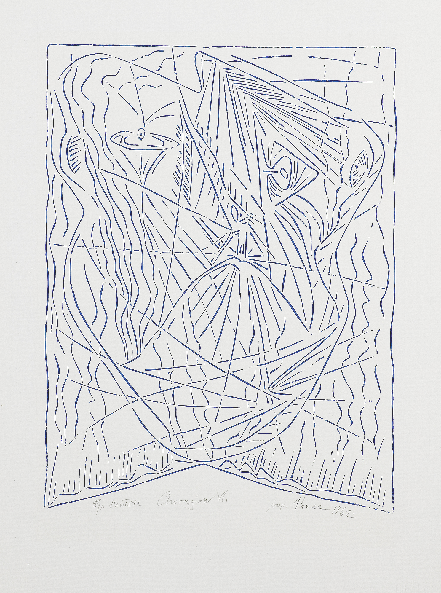 Jerzy Panek (Tarnów 1918 - Kraków 2001) odbył studia graficzne w Państwowym Instytucie Sztuk Plastycznych w Krakowie (1937-1939). Kontynuował je w Kunstgewerbeschule (1940-1942), a następnie na Wydziale Malarstwa ASP w Krakowie (1945-1948, dyplom 1955). W 1955 odbył podróż do Chin. Przez rok uczył rysunku i malarstwa na Wydziale Form Przemysłowych ASP w Krakowie (1967-1968). Od początku lat 50. skupił się na technice drzeworytu, którą traktował niekonwencjonalnie, mianowicie jako okazję do pracy na pograniczu rzeźby. Klocki drzeworytnicze Panka odznaczały się nie tylko wielkimi rozmiarami, ale i tym, że ich "powierzchnie drukujące" zredukowane były do syntetycznych, oszczędnych zarysów kształtów na szerokich obszarach bieli. Tematyka jego drzeworytów obracała się wokół ludowych, wiejskich i małomiasteczkowych spraw i klimatów. Artysta szczególnie chętnie portretował zwierzęta. Jako grafik zyskał międzynarodową renomę i wiele nagród. W latach 70. zajął się w szerszym zakresie malarstwem, tworząc serie "Autoportretów", nacechowanych rubaszną autoironią.