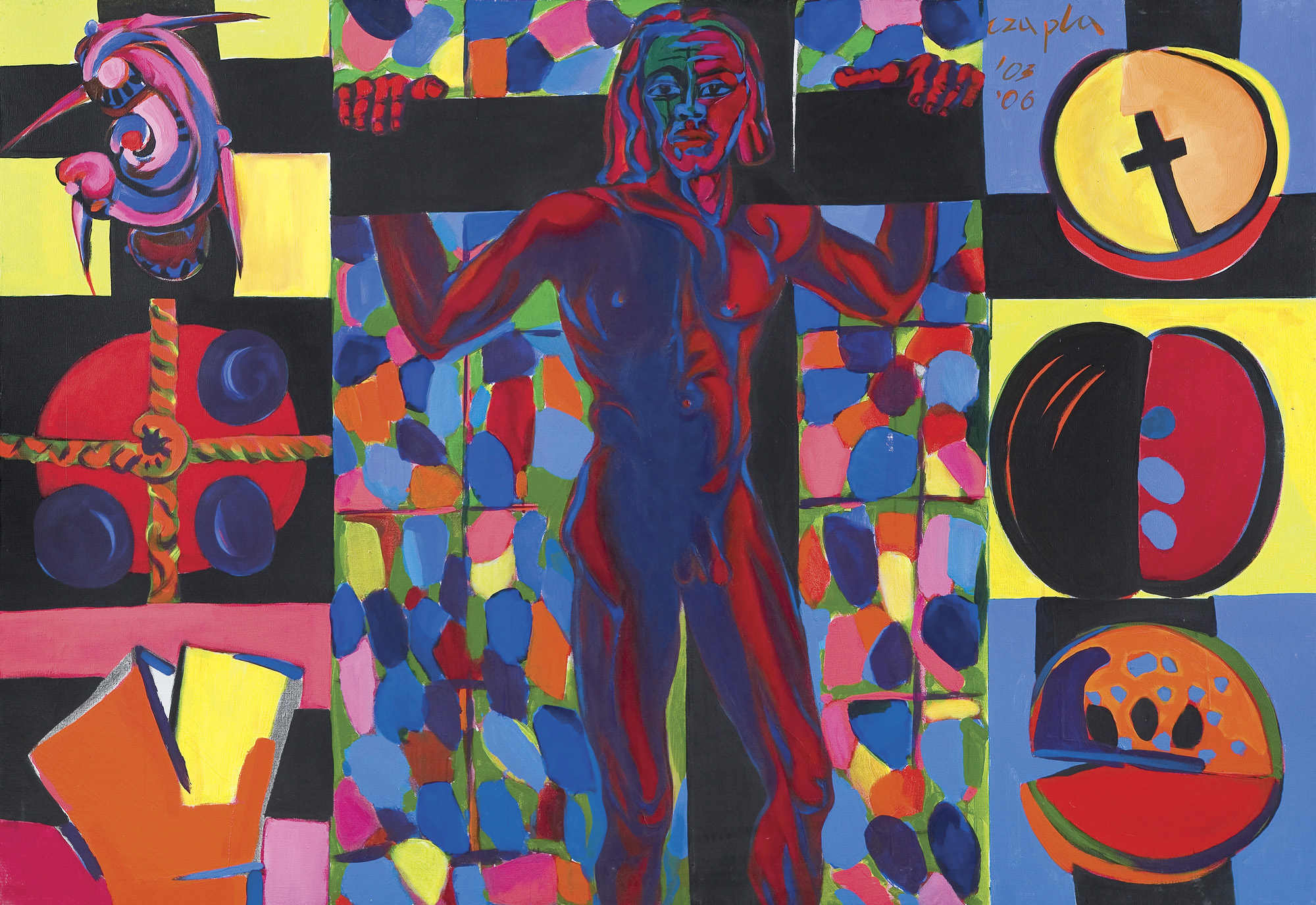 Marian Czapla (Gacki na Kielecczyźnie 28 VII 1946 - Warszawa 12 I 2016) studiował na Wydziale Malarstwa ASP w Warszawie w latach 1966-1972. Uzyskał dyplom w pracowni prof. Stefana Gierowskiego. W 1972 podjął pracę pedagogiczną w macierzystej uczelni. Od 1990 był profesorem, prowadził własną pracownię malarstwa. W latach 1974-1979 był członkiem grupy „Symplex S4“, którą tworzyło grono młodych absolwentów warszawskiej ASP, zainteresowanych możliwością kontynuowania tradycji polskiego koloryzmu z jednej, unizmu Władysława Strzemińskiego z drugiej strony. Początkowo tworzył abstrakcyjne kompozycje budowane z barwnych, zamaszyście kładzionych smug i plam. Od końca lat 70. w jego malarstwie przeważyła figuracja. Wyróżniającym się wątkiem twórczości Czapli były tematy i odniesienia religijne. Zainteresowania te pozostały aktualne w jego sztuce w latach 80., kiedy połączył je z tematyką aktualną (cykl poświęcony górnikom z „Wujka“). W pracach z lat 90. (cykle „Upadek“, „Ecce Homo“ i in.) artysta malował monumentalne figury o mocnej tektonice, podkreślonej dodatkowo zdecydowanymi barwami i konturami, ujęte w dynamicznych ruchach i skrętach ciała. Umieszczone zazwyczaj na płaskich tłach jednolitego koloru, w umownej przestrzeni, zdają się zmagać z ograniczającym je kadrem obrazu. W 2002 roku z okazji 30-lecia pracy twórczej Mariana Czapli Muzeum Narodowe w Kielcach przygotowało wystawę jego prac, której towarzyszył naukowo opracowany katalog.