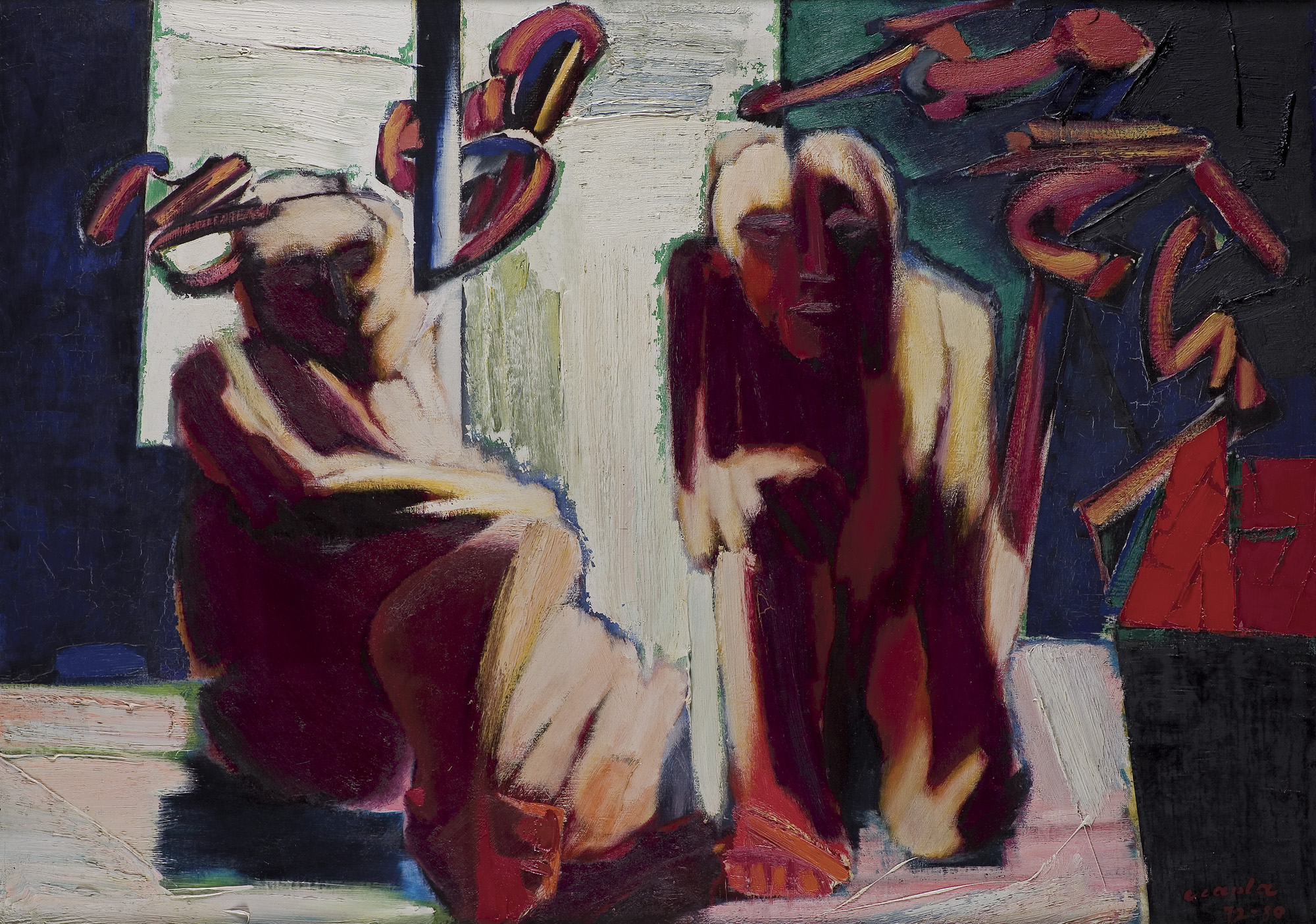 Marian Czapla (Gacki na Kielecczyźnie 28 VII 1946 - Warszawa 12 I 2016) studiował na Wydziale Malarstwa ASP w Warszawie w latach 1966-1972. Uzyskał dyplom w pracowni prof. Stefana Gierowskiego. W 1972 podjął pracę pedagogiczną w macierzystej uczelni. Od 1990 był profesorem, prowadził własną pracownię malarstwa. W latach 1974-1979 był członkiem grupy „Symplex S4“, którą tworzyło grono młodych absolwentów warszawskiej ASP, zainteresowanych możliwością kontynuowania tradycji polskiego koloryzmu z jednej, unizmu Władysława Strzemińskiego z drugiej strony. Początkowo tworzył abstrakcyjne kompozycje budowane z barwnych, zamaszyście kładzionych smug i plam. Od końca lat 70. w jego malarstwie przeważyła figuracja. Wyróżniającym się wątkiem twórczości Czapli były tematy i odniesienia religijne. Zainteresowania te pozostały aktualne w jego sztuce w latach 80., kiedy połączył je z tematyką aktualną (cykl poświęcony górnikom z „Wujka“). W pracach z lat 90. (cykle „Upadek“, „Ecce Homo“ i in.) artysta malował monumentalne figury o mocnej tektonice, podkreślonej dodatkowo zdecydowanymi barwami i konturami, ujęte w dynamicznych ruchach i skrętach ciała. Umieszczone zazwyczaj na płaskich tłach jednolitego koloru, w umownej przestrzeni, zdają się zmagać z ograniczającym je kadrem obrazu. W 2002 roku z okazji 30-lecia pracy twórczej Mariana Czapli Muzeum Narodowe w Kielcach przygotowało wystawę jego prac, której towarzyszył naukowo opracowany katalog.