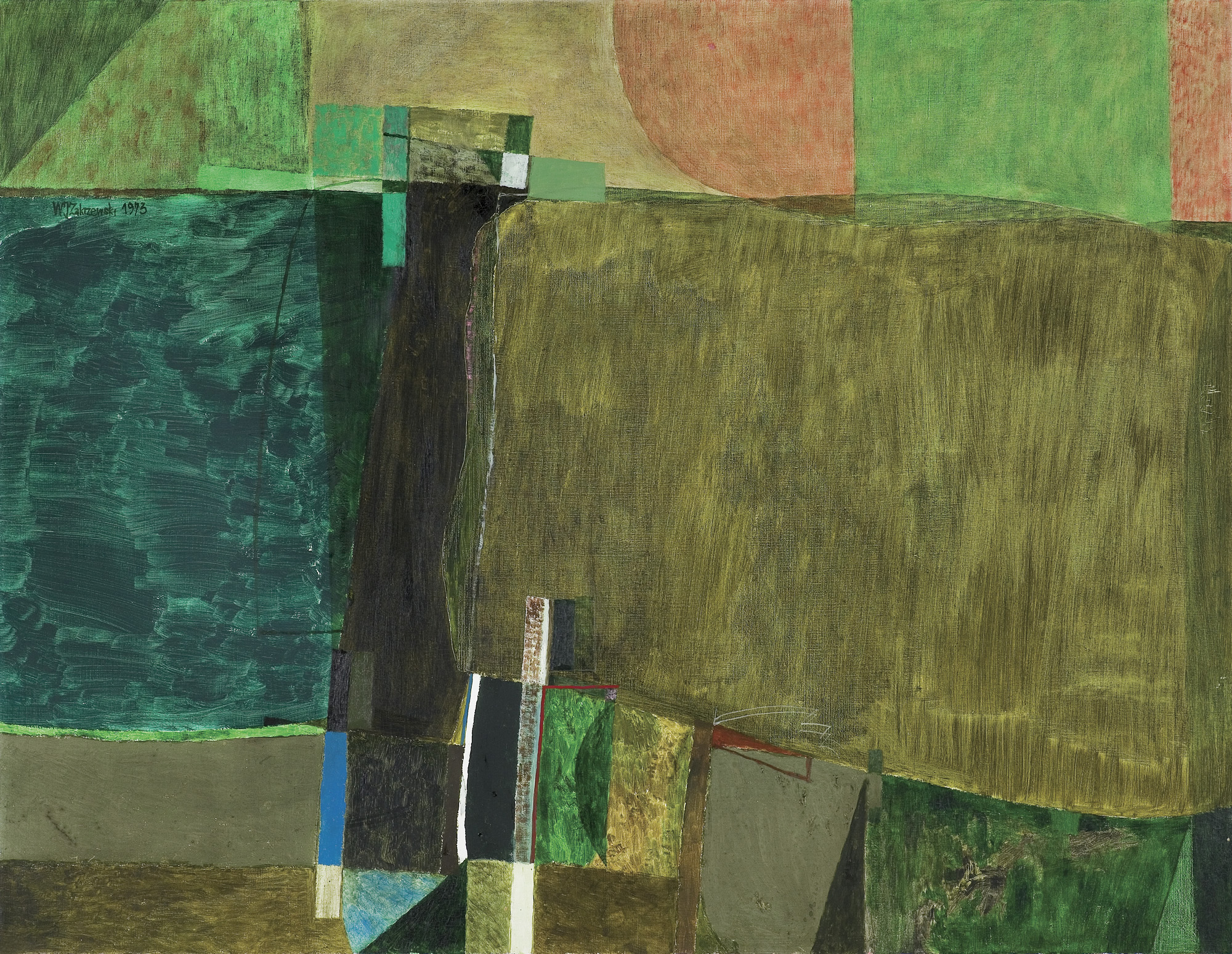 Po wyjeździe w 1981 roku do Stanów Zjednoczonych Zakrzewski kontynuował malarską autorefleksję i nadal rozgrywał na płótnach abstrakcyjne martwe natury i pejzaże utrzymane w konceptualnej dyscyplinie. W jego pracach z lat 80. można rozpoznać podobne do tych wcześniejszych, linearne formy na płaskich, neutralnych tłach, chociaż stawały się one coraz bardziej niematerialne poprzez przejrzystość linii i kolorów.