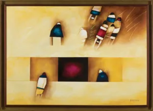 W 1968 roku postanowił wyjechać do USA. Najpierw jego przystankiem stał się Nowy Jork. Rok później przeniósł się do Kalifornii, gdzie w Los Angeles otworzył swoje pierwsze studio-galerię. Żył i pracował także w Santa Fe i w Denver, gdzie mieszkał od 1980 roku. „Tam czuje się siłę przestrzeni” – mówi artysta. Pobyt w USA zaowocował nowymi cyklami, jak Czarne Dziury, Zielone Dziury, Linie czy słynna Samotność. Motyw zaczerpnięty z zaobserwowanej przez artystę sytuacji: Nowy Jork, witryna sklepowa z luksusowymi futrami, na której tle, na chodniku, siedział skulony bezdomny. Stąd w kolejnych obrazach z tej serii symboliczna postać, pozbawiona znaków rozpoznawczych, szczegółów anatomii, ledwie kilka geometrycznych kształtów, a wszystko układające się w metaforę opuszczenia i samotności.