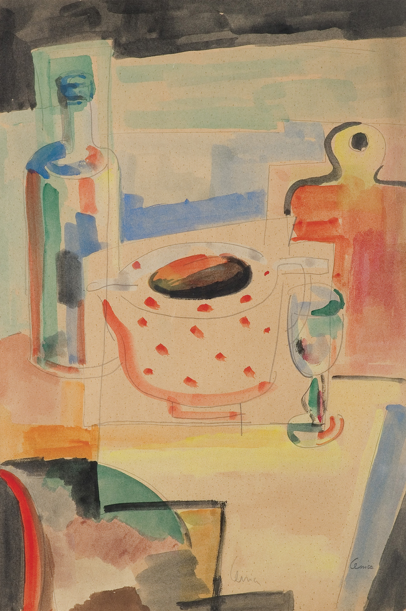 Alfred Lenica (Pabianice 1899 - Warszawa 1977) uczył się prywatnie rysunku i malarstwa w pracowniach Artura Hannytkiewicza i Piotra Kubowicza w Poznaniu (1925-1928). W latach 30. malował obrazy figuratywne, nawiązujące w stylistyce do kubizmu. Nieco później uległ wpływom surrealizmu, który, pomijając lata socrealizmu, stanie się dlań najpoważniejszym obszarem poszukiwań malarskich. Od połowy lat 40. utrzymywał stałe kontakty z kręgiem „Grupy Krakowskiej“, przyjaźnił się z Jerzym Kujawskim. Po przeniesieniu się do Poznania, w 1947 został współzałożycielem awangardowej grupy „4F+R“ (farba, forma, fantastyka, faktura + realizm). Jest autorem pierwszego polskiego obrazu taszystowskiego (Farby w ruchu, 1949, tempera). W okresie socrealizmu włączył się w nurt oficjalnej sztuki, pracując jednocześnie jako organizator życia artystycznego, prezes Okręgu Poznańskiego ZPAP (1948-1950) i jednocześnie kierownik Pracowni Sztuk Plastycznych tamże. W końcu lat 50. przeniósł się do Warszawy i również tu do 1969 pełnił kierownicze funkcje w ZPAP. W drugiej poł. lat 50. ponownie - po eksperymentach z lat 40. - uprawiał informel, malując chętnie techniką drippingu. Około 1958 wypracował indywidualny, charakterystyczny dlań styl wirujących, kolorowych, niekiedy kaligraficznie opracowanych form, które dynamicznie wypełniały pola obrazów. Tworzył je techniką zbliżoną do surrealistycznej dekalkomanii. Styl ten stał się znakiem rozpoznawczym artysty do końca życia. W swych obrazach nie unikał kształtów nawiązujących do form naturalnych (jego malarstwo nazywano „biologicznym“), a w latach 70. niekiedy włączał do kompozycji motywy figuralne. Wystawa retrospektywna artysty odbyła się w Galerii Zachęta w Warszawie w 1974.