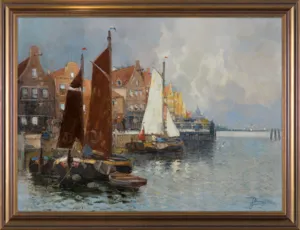 widoków "holenderskich" z motywami portowymi, nabrzeżami czy scenami z targów rybnych i kwiatowe.