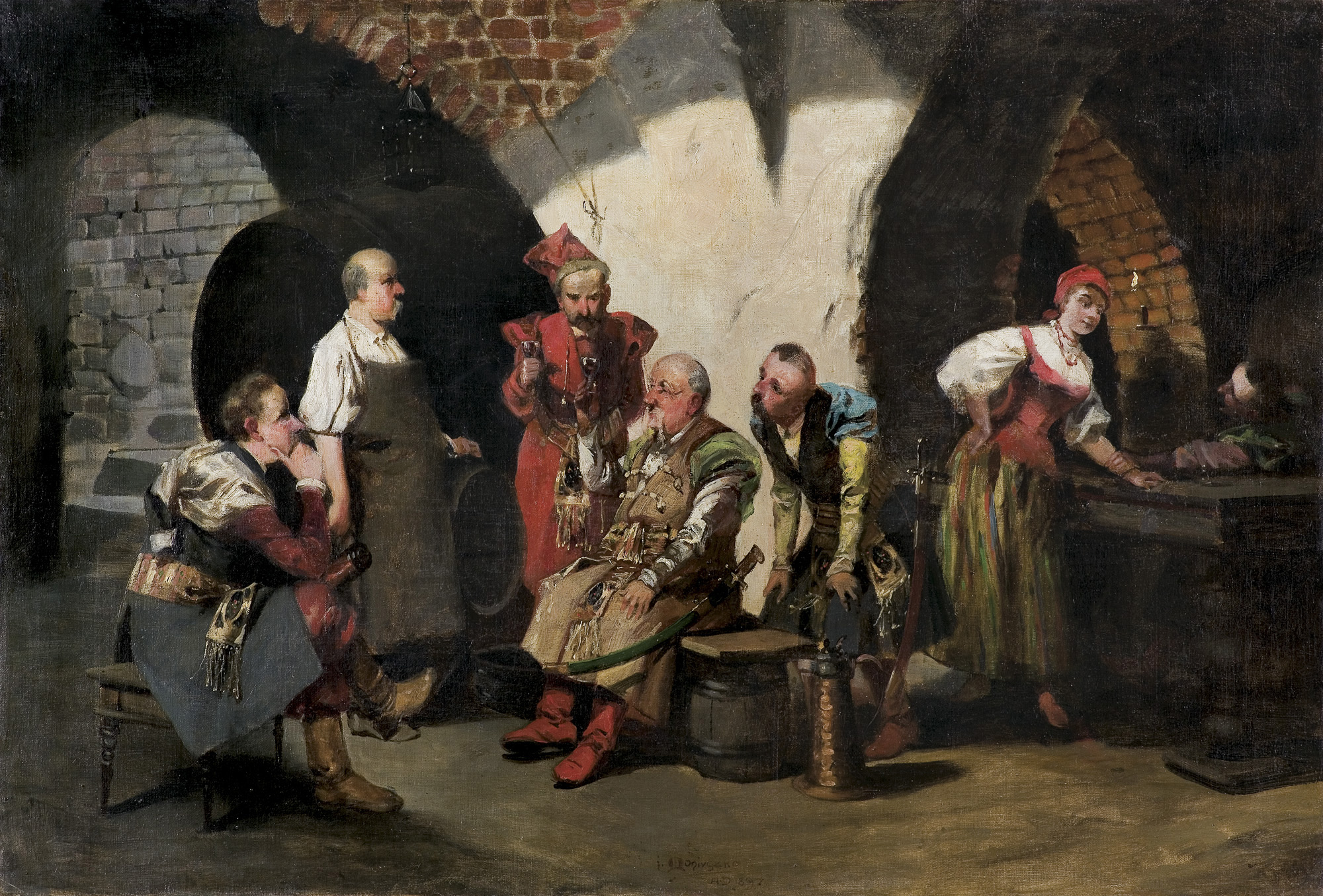 Jan Czesław Moniuszko (Wilno 1853 - Warszawa 1908) - syn kompozytora Stanisława - od roku 1871 uczył się malarstwa w warszawskiej Klasie Rysunkowej u Wojciecha Gersona i Antoniego Kamińskiego, a także prywatnie u Gersona i B.Dziadulewicza. W roku 1878 studiował w Akademii Sztuk Pięknych w Petersburgu. Od 1880 stale mieszkał i pracował w Warszawie. Malował sceny rodzajowe, historyczne, historyczno-rodzajowe i religijne. Jego dzieła wyróżniają się dobrą kompozycją, barwnością, wyczuciem nastroju i stylu epok historycznych, przy czym najbliższe były mu czasy stanisławowskie. Debiutował w roku 1879 na wystawie w warszawskiej Zachęcie, zwracając uwagę krytyki obrazem Pierwsze spotkanie Jadwigi z Jagiełłą. Później jeszcze wielokrotnie wystawiał w Zachęcie, w Salonie Krywulta, Salonie Ungra i Salonie Artystycz-nym gdzie w roku 1905 odbyła się zbiorowa wystawa jego prac (ok. 50 obrazów). Wystawiał także w Krakowie, w Łodzi i w Kijowie.