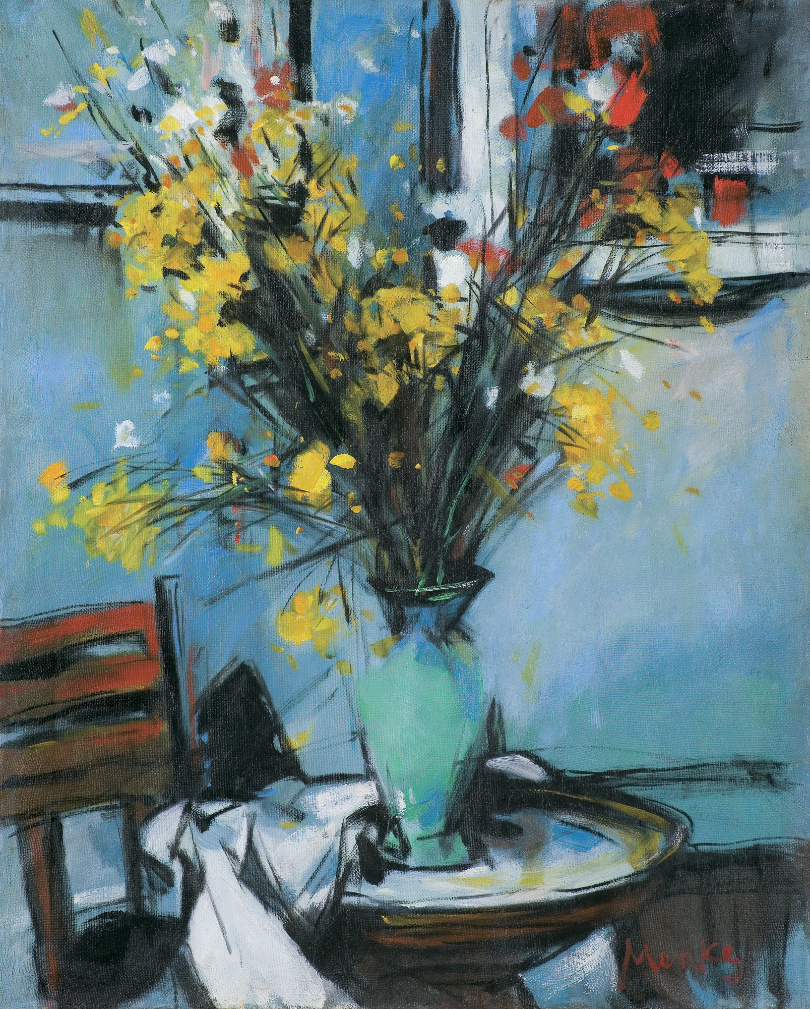 Zygmunt Menkes (Lwów 1896 - Riverdale, Nowy Jork 1986) naukę malarstwa rozpoczął pod kierunkiem Kazimierza Sichulskiego w lwowskiej Szkole Przemysłu Artystycznego. Następnie, w latach 1919-1922 studiował w krakowskiej Akademii Sztuk Pięknych u Wojciecha Weissa. W roku 1922 wyjechał do Berlina, gdzie poznał Aleksandra Archipenkę i korzystał z jego wskazówek. Od roku 1923 stale przebywał w Paryżu. Związany ze środowiskiem artystów École de Paris, przyjaźnił się, m.in. z E. Zakiem i M. Chagallem. Uczestniczył w Salonach Jesiennych, Niezależnych i Tuileries, wystawiał w wielu galeriach paryskich. Często przyjeżdżał do kraju; był członkiem lwowskiego ugrupowania Nowa Generacja i krakowskiego Zrzeszenia Artystów Plastyków Zwornik, uczestniczył w wystawach we Lwowie i w Warszawie. Wiele podróżował, m.in. w 1928 był w Berlinie, a w 1935 w Hiszpanii (razem z A. Nachtem-Samborskim). W 1935 wyjechał do Nowego Jorku, gdzie osiadł na stałe i gdzie w 1936 miał wystawę indywidualną. Przez lata współpracował z tamtejszymi galeriami sztuki i wykładał w Art Students League. Malował portrety, akty, kompozycje figuralne, martwe natury i pejzaże, a po 1940 także obrazy nawiązujące do martyrologii Żydów. Jego malarstwo ulegało różnym przemianom stylistycznym. W okresie paryskim obrazy artysty bliskie były nurtom ekspresjonizmu i fowizmu. W okresie powojennym ograniczał kolorystykę, wprowadzał mocną linię konturu, bogatą fakturę, a z czasem także coraz wyraźniejszą geometryzację form.