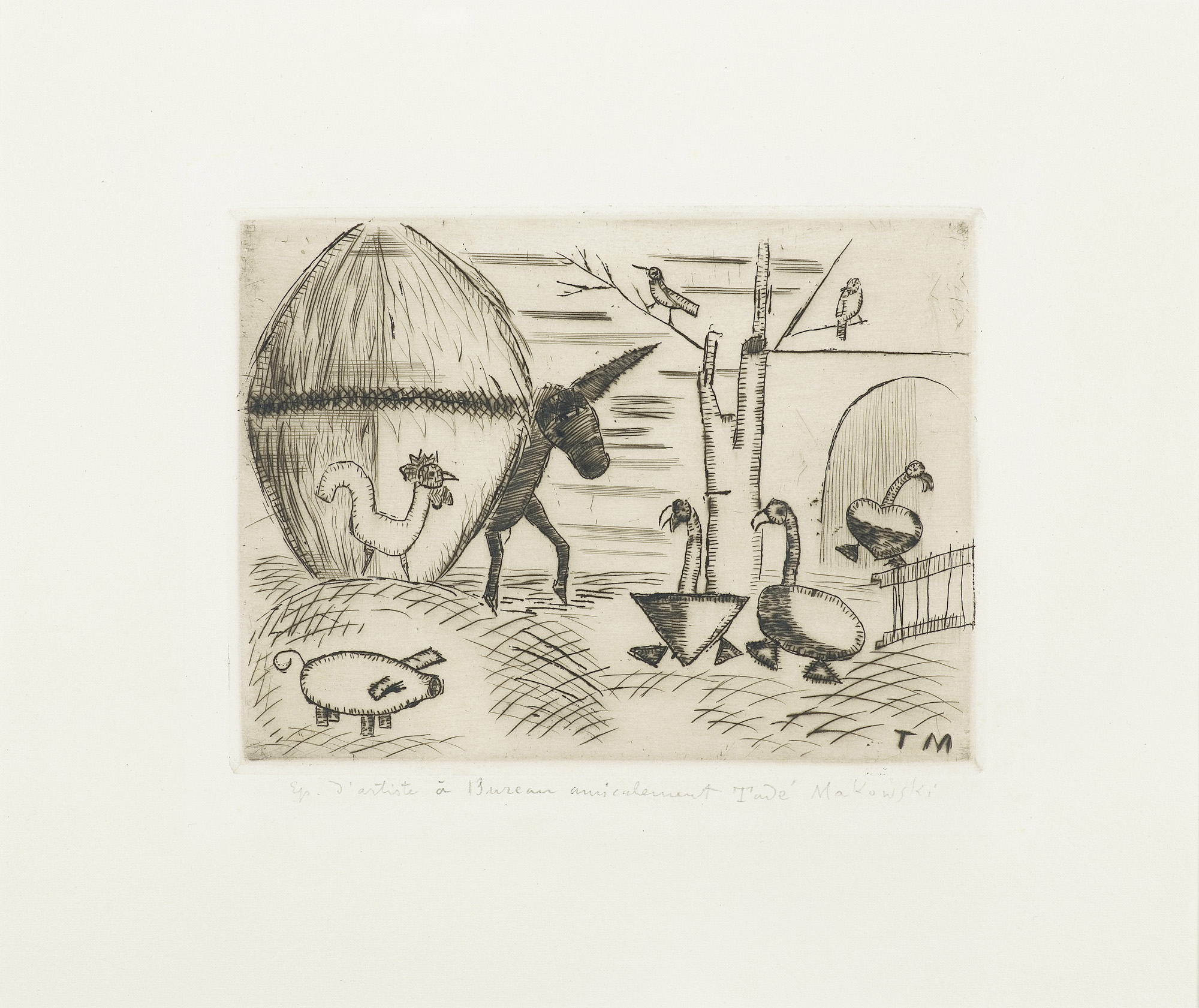 Tadeusz Makowski (Oświęcim 1882 - Paryż 1932) - malarz, grafik; w latach 1903-1908 studiował malarstwo u Józefa Mehoffera i Jana Stanisławskiego w krakowskiej Akademii Sztuk Pięknych. W czasie studiów podróżował do Wenecji, po ich ukończeniu wyjechał do Paryża i tam pozostał na stałe. W czasie I wojny światowej przebywał w Bretanii, przyjaźniąc się z Władysławem Ślewińskim. W 1916 wrócił do Paryża, skąd wyjeżdżał do Owernii, Holandii i Belgii. W początkach twórczości inspirował się malarstwem Pierra Puvis de Chavannes’a. W latach 1912-1915 w jego obrazach widoczna jest fascynacja kubizmem, a później także inspiracje dawnym malarstwem holenderskim i polską sztuką ludową. Z czasem artysta coraz bardziej upraszczał formę, dochodząc do stworzenia „własnego systemu znaków plastycznych“. Szczególnie często malował dzieci, w okresie późniejszym także starych ludzi, a zawsze chętnie kwiaty i pejzaże. Wiele wystawiał we Francji, natomiast w kraju nie był specjalnie znany. Jedyna większa wystawa jego prac odbyła się w roku 1936 w warszawskim Instytucie Propagandy Sztuki. Dziś jest uznany za jednego z najciekawszych malarzy polskich okresu dwudziestolecia międzywojennego. Jego twórczość, wnikliwie opracowana i omówiona w opracowaniach prof. W. Jaworskiej, prezentowana była w 1960 na wystawie monograficznej w Muzeum Narodowym w Warszawie, na wystawie w 1990/1991 prezentowanej w Bochum i Muzeum Narodowym w Warszawie i na ostatniej wystawie w Muzeum Śląskim w Katowicach i ponownie w Muzeum w Warszawie.