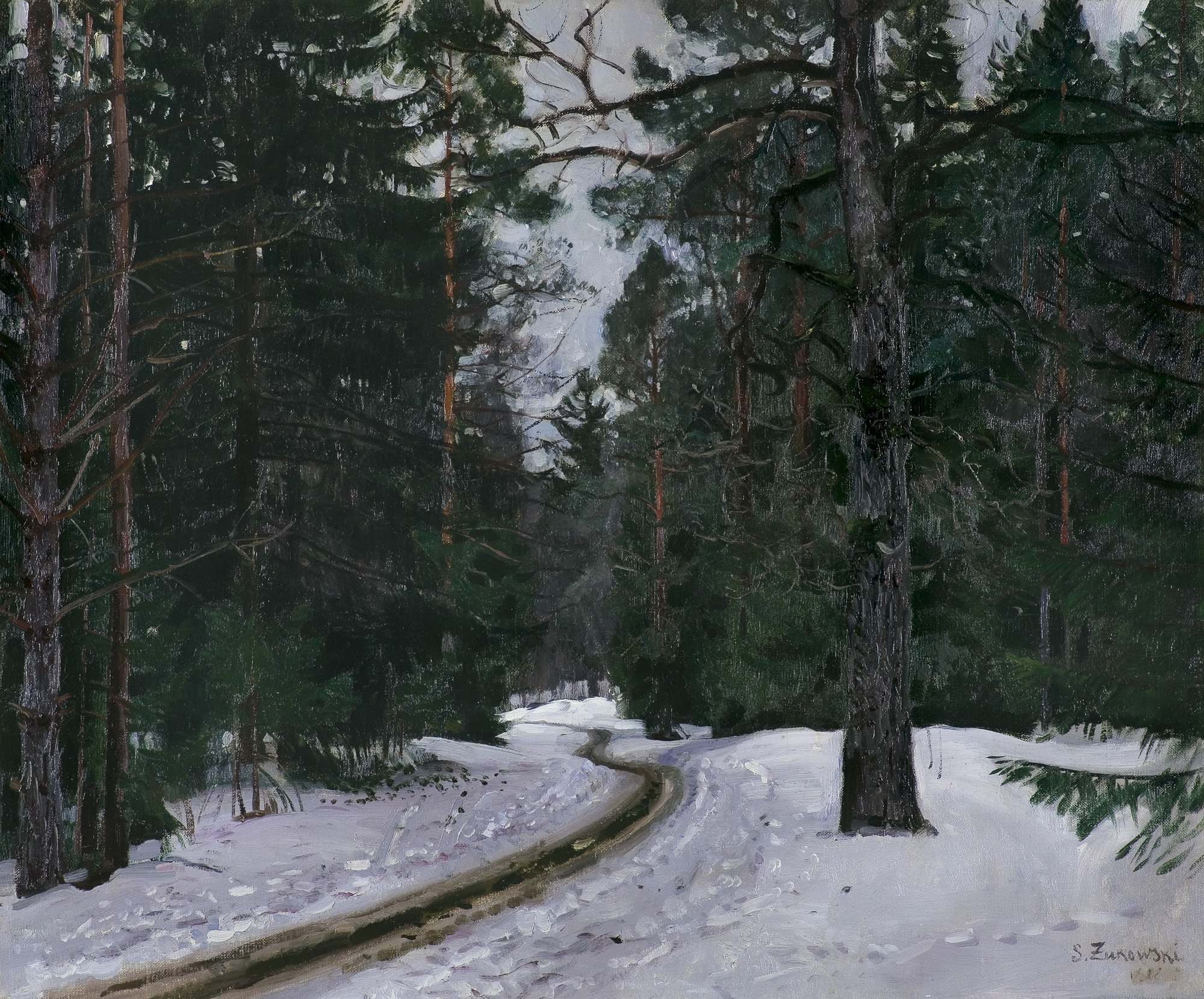Stanisław Żukowski (Jędrychowice k. Grodna 1875 - Pruszków 1944) – malarz pejzażysta; w latach 1892-1901 studiował w Moskiewskiej Szkole Malarstwa, Rzeźby i Architektury, m.in u Siergieja Korowina, Abrama Archipowa i Isaaka Lewitana. Po studiach pozostał w Rosji. Od 1896 uczestniczył w wystawach Towarzystwa Pieriedwiżników; w roku 1907 otrzymał tytuł akademika. Od 1923 stale mieszkał w Warszawie, gdzie wielokrotnie wystawiał w Towarzystwie Zachęty Sztuk Pięknych. Był przede wszystkim znakomitym pejzażystą; malował także wnętrza i rzadziej portrety. Jego obrazy, zawsze wysoko cenione, niejednokrotnie były odznaczane medalami na wystawach - m.in. w roku 1912 na międzynarodowej wystawie w Monachium nagrodzono złotym medalem Jesienny wieczór. Podczas pobytu w Rosji, artysta najczęściej podpisywał swoje prace cyrylicą, później alfabetem łacińskim. Wiele jego obrazów znajduje się w polskich zbiorach muzealnych oraz w muzeach Moskwy, Petersburga i Mińska. Katalog znanych dzieł artysty zawiera bogato ilustrowana monografia, autorstwa M.U.Goriełowa [Stanisław Julianowicz Żukowskij, Moskwa 1982].