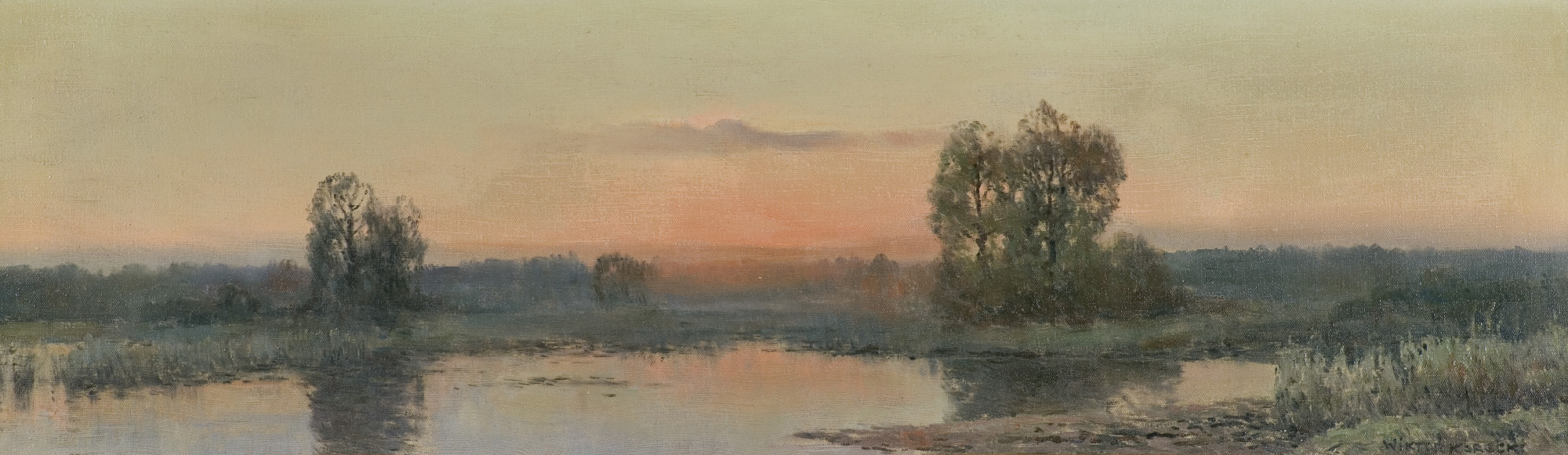 Wiktor Korecki (Kamieniec Podolski 1890 - Komorów k. Warszawy 1980) - malarz pejzażysta - gimnazjum ukończył w Kijowie, tam też studiował w Szkole Rysunkowej Aleksandra Muraszki. Po studiach wrócił do Kamieńca Podolskiego, skąd w roku 1921 wyjechał do Warszawy. Tu miał pracownię na rogu ulic Tamki i Cichej. Niestety zgromadzone tam obrazy spłonęły w czasie powstania 1944 roku. Po powstaniu artysta przebywał w obozie w Pruszkowie skąd trafił do obozu pracy w Lipsku. Do kraju powrócił w roku 1946 i zamieszkał w Komorowie pod Warszawą, a później w Milanówku. Jego nastrojowe krajobrazy emanujące spokojem i pogodą cieszyły się zawsze dużą popularnością. Korecki najczęściej malował pejzaże zimowe z motywem leśnej drogi i strumienia wijącego się wśród śniegów, a obok nich także wiosenne, letnie czy jesienne widoki z Mazowsza.