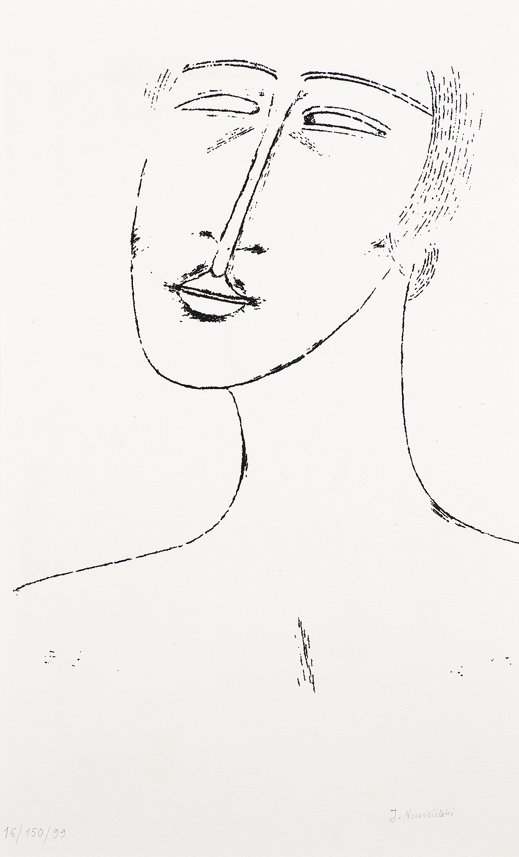 Jerzy Nowosielski (Kraków 1923 - Kraków 2011) w 1940 zaczął studia w Kunstgewerbeschule w Krakowie. W 1942 przebywał przez niecały rok w Ławrze św. Jana Chrzciciela pod Lwowem. Studiował tam sztukę malowania i historię ikon. Po powrocie do Krakowa w 1943 nawiązał ponowne kontakty z kręgiem przyszłej Grupy Krakowskiej. Po wojnie kontynuował studia w ASP w Krakowie pod kierunkiem prof. Eugeniusza Eibischa (1945-1947). Na I Wystawie Sztuki Nowoczesnej w Krakowie w 1948/49 pokazał obrazy utrzymane w nurcie abstrakcji geometrycznej. W latach socrealizmu nie wystawiał, zajmując się w tym czasie scenografią oraz malowaniem cerkwi i kościołów. W 1955 w Łodzi zaprezentował swą pierwszą wystawę indywidualną, w 1956 wziął udział w XXVIII Biennale w Wenecji. W latach 1957-1962 był pedagogiem w Państwowej Wyższej Szkole Sztuk Plastycznych w Łodzi, następnie w Akademii krakowskiej, gdzie wykładał na Wydziale Malarstwa do przejścia na emeryturę w 1993. W drugiej połowie lat 50. osiągnął charakterystyczny styl aktów, pejzaży i scen figuralnych we wnętrzach, który zawdzięczał swej fascynacji ikoną i doświadczeniom z malarstwem sakralnym. W 1976 podjął na nowo realizacje monumentalne, wykonując m.in. malowidła ścienne, stacje Drogi Krzyżowej i projekty witraży w kościele Opatrzności Bożej w Wesołej pod Warszawą (1976-1979). Artysta powszechnie uznawany był za autorytet w dziedzinie sztuki zakorzenionej w wartościach duchowych.