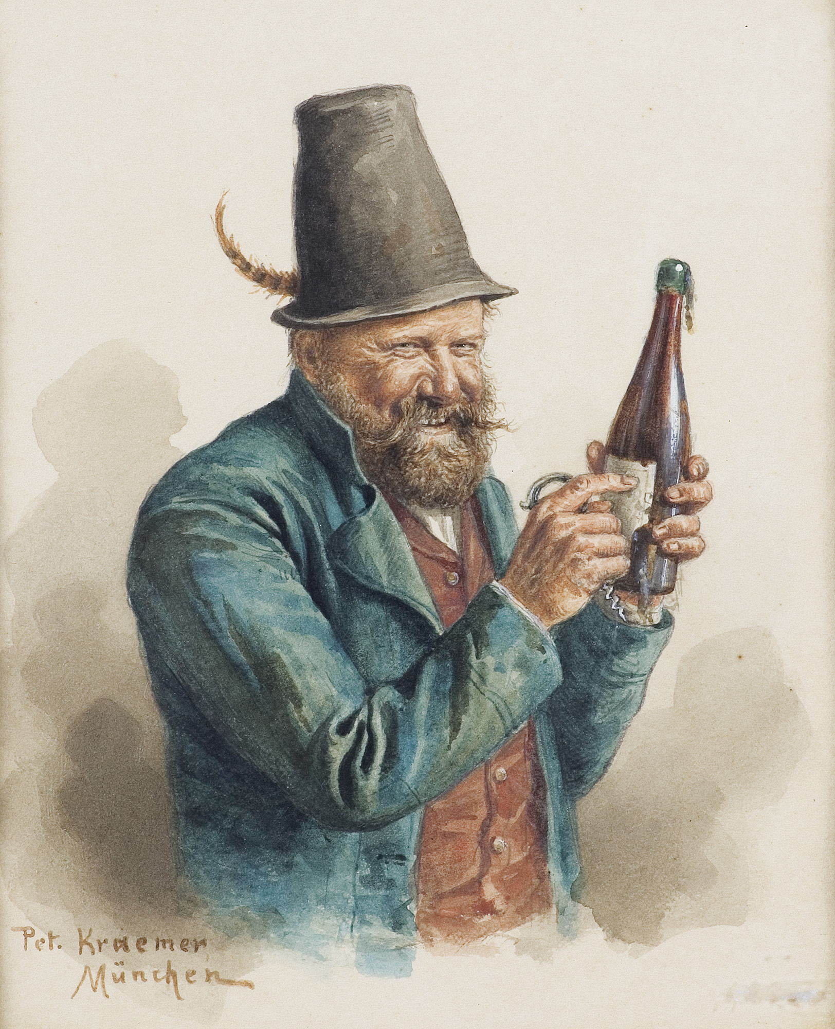 Peter Kraemer II (1857 Philadelphia – 1936 Dießen) był synem malarza Petera Kraemera I, który po dłuższym pobycie w Ameryce wrócił w 1871 do Niemiec. W tym samym roku Kraemer II rozpoczął naukę w Szkole Sztuki w Stuttgarcie, a od 1874 studiował w Akademii Sztuk Pięknych w Monachium pod kierunkiem Aleksandra Strähubera, Ferdynanda Bartha i Otto Seitza. Artysta malował przede wszystkim obrazy rodzajowe (Wesoła jazda, Mały polityk, Odpoczynek myśliwego) i studia portretowe. Posługiwał się przeważnie akwarelą.