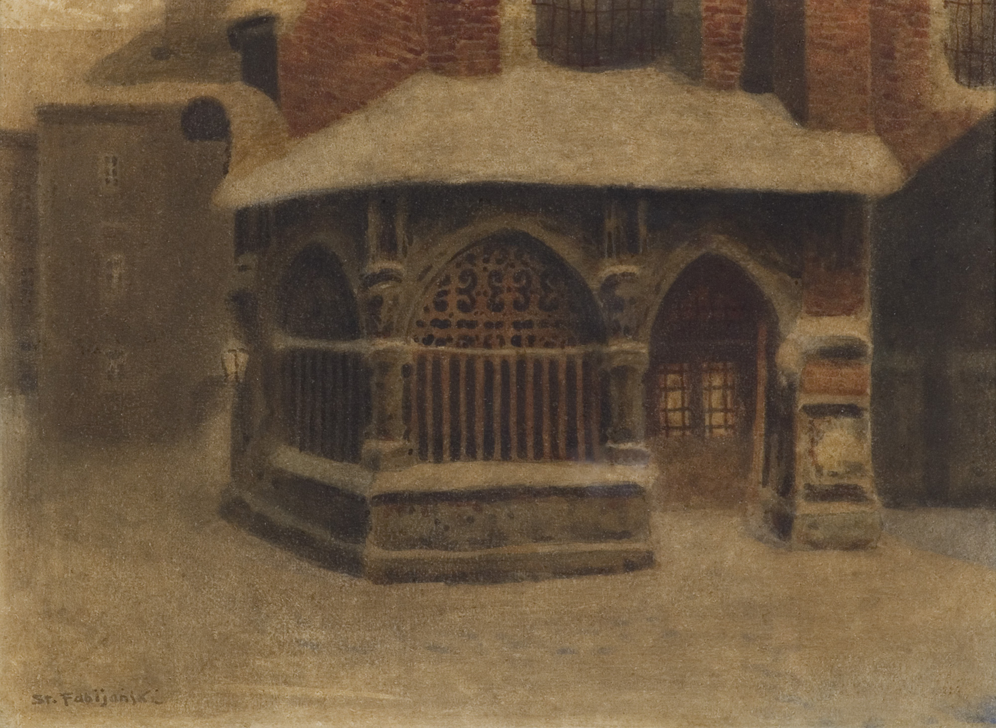 Stanisław Fabijański (Parytż 1865 - Kraków 1947) - malarz, ilustrator, twórca plakatów -studia artystyczne rozpoczął we Lwowie u rzeźbiarza Leonarda Marconiego, następnie w latach 1883 - 1888 uczył się w krakowskiej Szkole Sztuk Pięknych, m.in. pod kierunkiem Władysława Łuszczkiewicza, Floriana Cynka, Leopolda Loefflera i Jana Matejki. W roku 1888 wyjechał do Monachium i studiował u Aleksandra Wagnera w tamtejszej Akademii. Podróżował do Włoch i Paryża, po powrocie do kraju mieszkał w Krakowie. Olejno i akwarelą malował widoki miejskie, głównie Krakowa, portrety, sceny rodzajowe i historyczne, kompozycje fantastyczne i religijne. Zajmował się ilustratorstwem i rzeźbą.