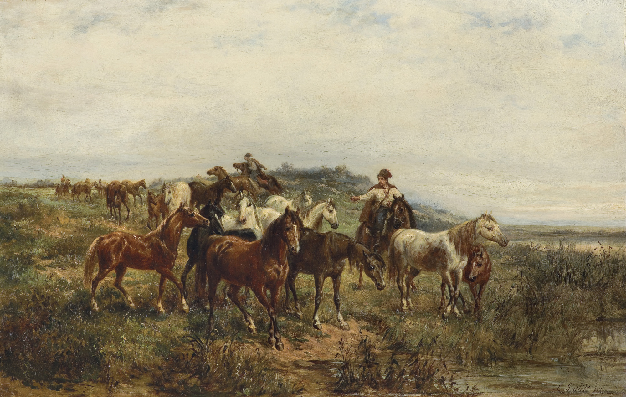 Ludwik Gędłek (Kraków 1847 - Wiedeń 1904) rozpoczął studia artystyczne w krakowskiej Szkole Sztuk Pięknych pod kierunkiem Władysława Łuszczkiewicza, a w latach 1872-1877 kontynuował je w Akademii wiedeńskiej u Eduarda Lichtenfelsa i Carla Wurzingera. Już w roku 1863 debiutował na wystawie w krakowskim TPSP, gdzie później wystawiał jeszcze kilkakrotnie. Stale mieszkał w Wiedniu, skąd wysyłał obrazy także na wystawy do TPSP we Lwowie, do Salonu Aleksandra Krywulta w Warszawie oraz do Drezna. Malował przede wszystkim sceny rodzajowe i batalistyczne z częstym motywem koni, a także krajobrazy, głównie z okolic Krakowa. Obrazy artysty znajdują się, m.in. w Muzeum Narodowym w Warszawie, Lwowskiej Galerii Obrazów i Polskim Muzeum w Chicago