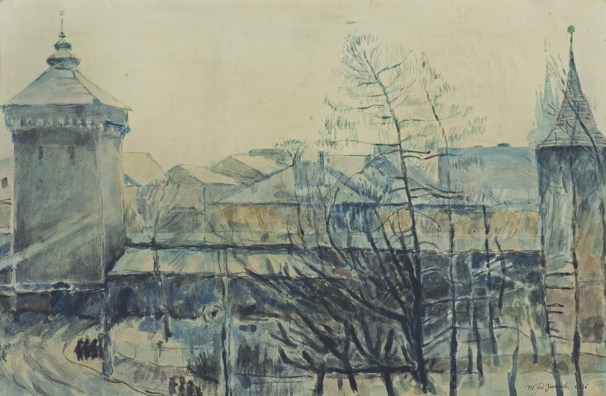 WIDOK Z OKNA PRACOWNI NA BRAMĘ FLORIAŃSKĄ, 1936