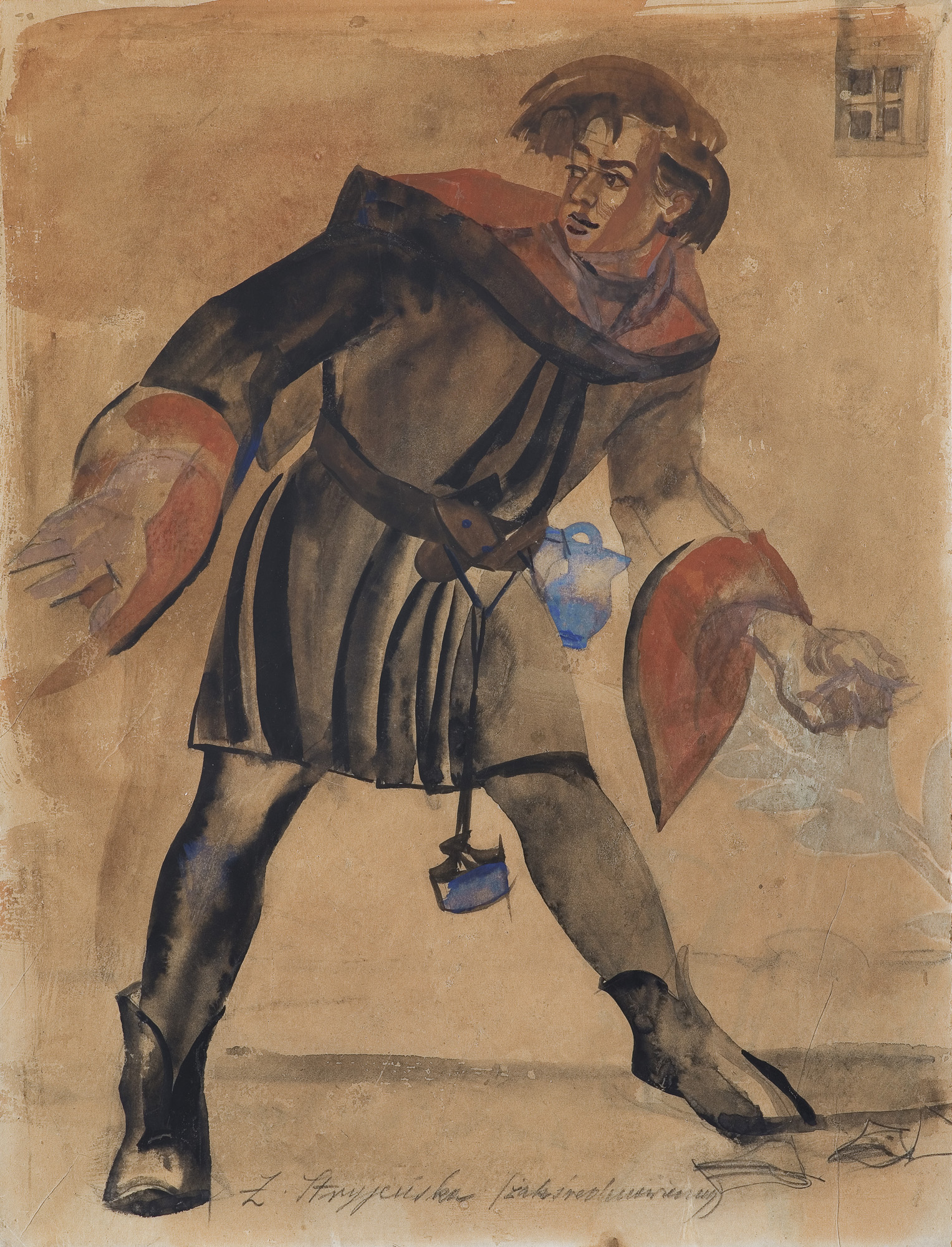 Zofia Stryjeńska, z domu Lubańska (Kraków 1891 - Genewa 1976) - malarka, ilustratorka, scenograf - była jedną z barwniejszych postaci polskiego środowiska artystycznego w dwudziestoleciu międzywojennym. Po krótkim okresie nauki u Leonarda Stroynowskiego i w krakowskiej szkole Marii Niedzielskiej wyjechała do Monachium, gdzie w latach 1911-1912 w męskim przebraniu studiowała w Akademii Sztuk Pięknych (kobiet wówczas na studia nie przyjmowano). Debiutowała w krakowskim TPSP w roku 1912 cyklem kartonów Polskich bajd inspirowanych opowieściami ludowymi. W 1916 wyszła za mąż za Karola Stryjeńskiego. Do 1919 mieszkała w Krakowie, później w Paryżu, Krakowie, Zakopanem i Warszawie. W roku 1925 odniosła międzynarodowy sukces na Wystawie Sztuki Dekoracyjnej w Paryżu, otrzymując Gran Prix w czterech działach (malarstwo, plakat, tkanina, ilustracja) oraz Diplom d’Honneur za projekty zabawek. Zajmowała się dekoracyjnym malarstwem architektonicznym, polichromią, ilustratorstwem, scenografią (m.in. Harnasie Karola Szymanowskiego; 1938), wzornictwem przemysłowym (projekty kilimów, zabawek). Stworzyła własny specyficzny styl w dekoracyjnie stylizowanych, barwnych, pełnych dynamiki i temperamentu obrazach; temperach, akwarelach i gwaszach. W ich tematyce odwoływała się do legend, wierzeń, historii i obyczajowości ludowej. Wydała kilka tek graficznych (Bożki słowiańskie, 1917 i 1922) i albumów reprodukcji (Tańce polskie, 1927; Pascha, 1929; Piastowie, 1929; Gusła Słowian / Magie Slave, 1934). Jej prace popularyzowane były także przez liczne barwne pocztówki.