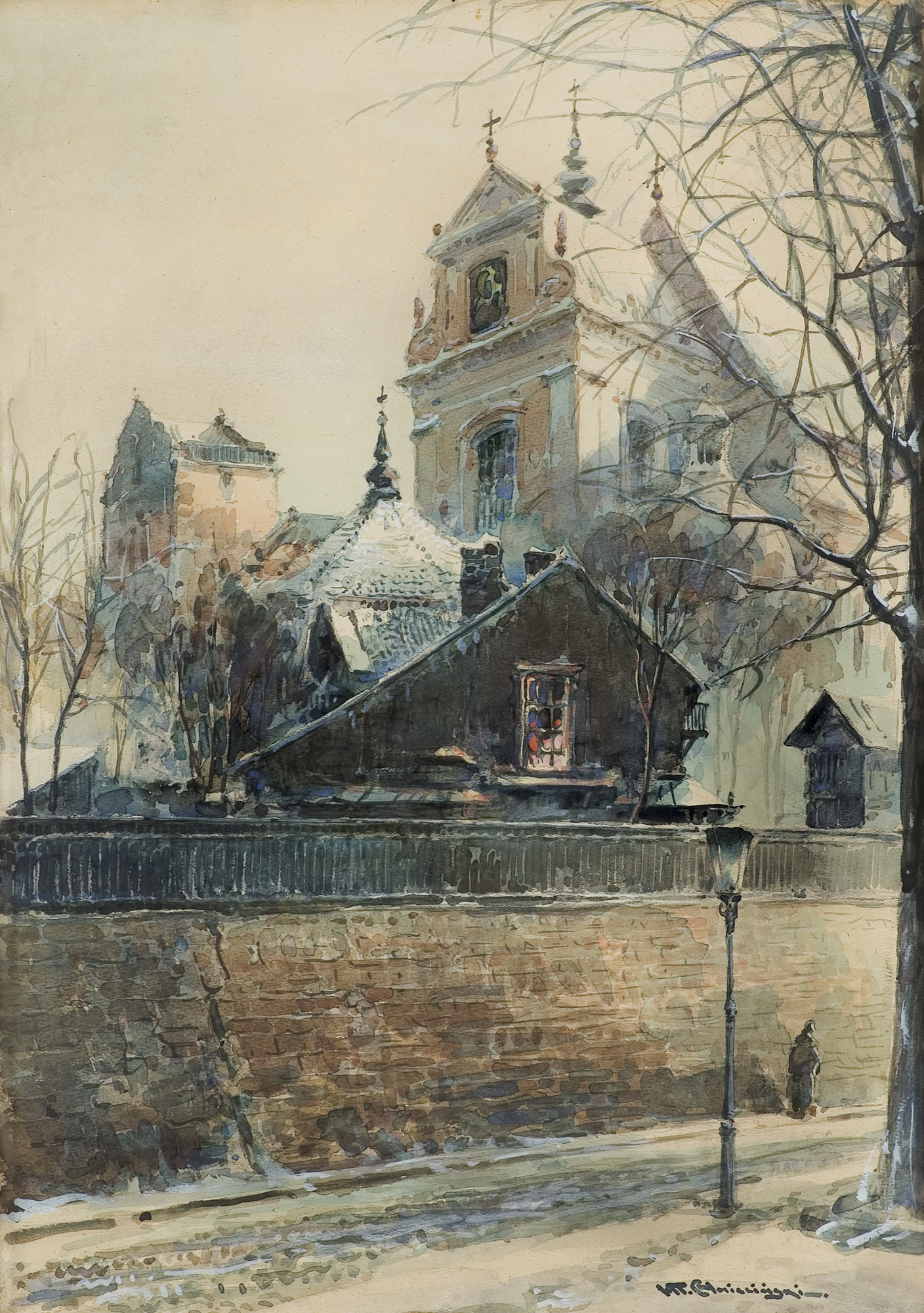 Władysław Chmieliński (Warszawa 1911 - Warszawa 1979) był malarzem związanym z Warszawą, gdzie stale mieszkał i pracował. W latach 1926-1931 studiował w warszawskiej Miejskiej Szkole Sztuk Zdobniczych i Malarstwa (dawna Klasa Rysunkowa). Wiodącym tematem jego obrazów były widoki miejskie, malowane olejno i akwarelą. W latach 1935-1938 stworzył cykl akwarel przedstawiających obiekty polskiej architektury; wśród nich, widoki Sandomierza, Krakowa, Kazimierza nad Wisłą, a także wnętrza zabytkowych kościołów czy pałaców, m.in. Zamku Królewskiego w Warszawie i Pałacu w Wilanowie. Malował także pejzaże i wiejskie sceny rodzajowe – kuligi, sanny, zaprzęgi, wesela, konie na tle krajobrazu. W latach 1967-1969 wyjeżdżał na dłuższe pobyty do Danii. W latach 1936-1939 artysta używał także pseudonimu „Władysław Stachowicz”.