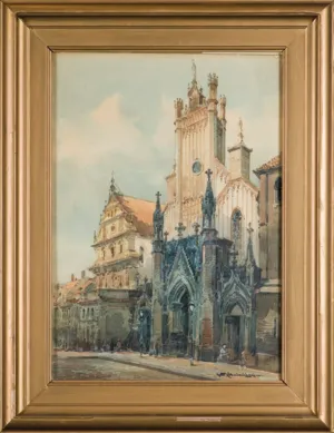Władysław Chmieliński (Warszawa 1911 - Warszawa 1979) był malarzem związanym z Warszawą, gdzie stale mieszkał i pracował. W latach 1926-1931 studiował w warszawskiej Miejskiej Szkole Sztuk Zdobniczych i Malarstwa (dawna Klasa Rysunkowa). Wiodącym tematem jego obrazów były widoki miejskie, malowane olejno i akwarelą. W latach 1935-1938 stworzył cykl akwarel przedstawiających obiekty polskiej architektury; wśród nich, widoki Sandomierza, Krakowa, Kazimierza nad Wisłą, a także wnętrza zabytkowych kościołów czy pałaców, m.in. Zamku Królewskiego w Warszawie i Pałacu w Wilanowie. Malował także pejzaże i wiejskie sceny rodzajowe – kuligi, sanny, zaprzęgi, wesela, konie na tle krajobrazu. W latach 1967-1969 wyjeżdżał na dłuższe pobyty do Danii. W latach 1936-1939 artysta używał także pseudonimu „Władysław Stachowicz”.