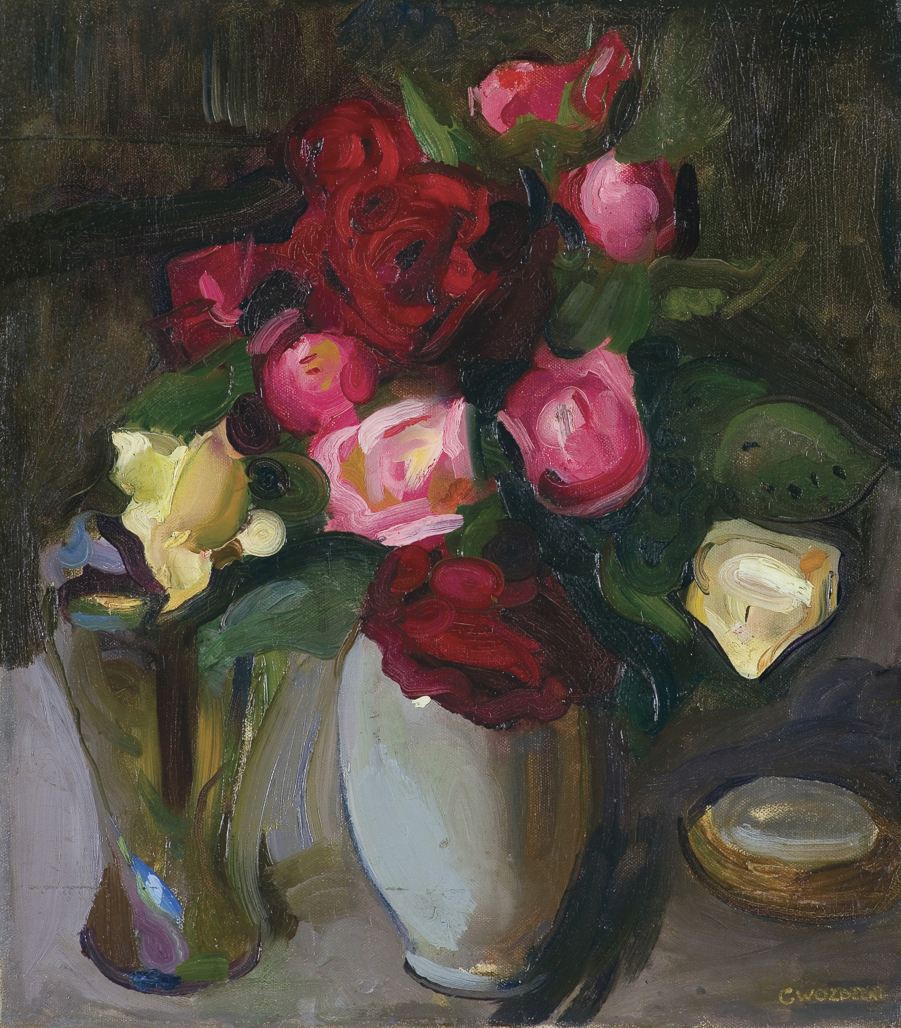 Gustaw Gwozdecki (Warszawa 1880 - Paryż 1935) - malarz, rzeźbiarz i grafik; studiował w Warszawie, w 1899 w Monachium, następnie w u Jana Stanisławskiego w krakowskiej Akademii Sztuk Pięknych, a później w prywatnej szkole Konrada Krzyżanowskiego w Warszawie. W 1903 wyjechał do Paryża, gdzie uczył się jeszcze w pracowni rzeźbiarza Ponscarme’a. W Paryżu od 1904 wielokrotnie wystawiał swoje obrazy i rzeźby w Salon de la Sociéte des Beaux-Arts i Salon d’Automne. W 1912 i 1913 urządził we własnej pracowni wystawy indywidualne przyciągając uwagę francuskich krytyków, m.in. Andre Salmona i Guillaume’a. Apollinaire’a. Swoje prace przesyłał także na wystawy krajowe (m.in. wystawy „Sztuki” i grupy Formistów). Był ważną postacią polskiej kolonii artystycznej we Francji. W 1914 dzięki jego staraniom otwarto w Paryżu polską Akademię Malarstwa (jej działalność przerwał wybuch I wojny światowej). W 1915 był w Nowego Jorku i odtąd jeździł tam wielokrotnie, działając, m.in. w Komitecie Stosunków Artystycznych Polsko-Amerykańskich i wystawiając swoje malarskie i rzeźbiarskie prace. Zajmował się teorią sztuki, publikował artykuły o malarstwie, był autorem książki O ewolucji w malarstwie. Ponadto był kompozytorem i pianistą. W malarskiej twórczości artysty widoczna jest ewolucja formy jego dzieł - od wczesnych prac związanych nurtami symbolizmu i ekspresjonizmu, poprzez wyraźną fascynację fowizmem, sztuką Matisse’a i van Dongena, aż do obrazów zbliżonych formą do klasycyzmu lat dwudziestych. Malował pejzaże, portrety, kompozycje symboliczne, martwe natury oraz bukiety kwiatów nawiązujące do kompozycji malarzy japońskich działających w latach dwudziestych w Paryżu.
