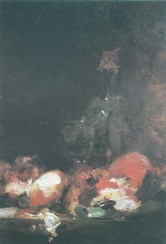 Martwa natura z owocami i butelką