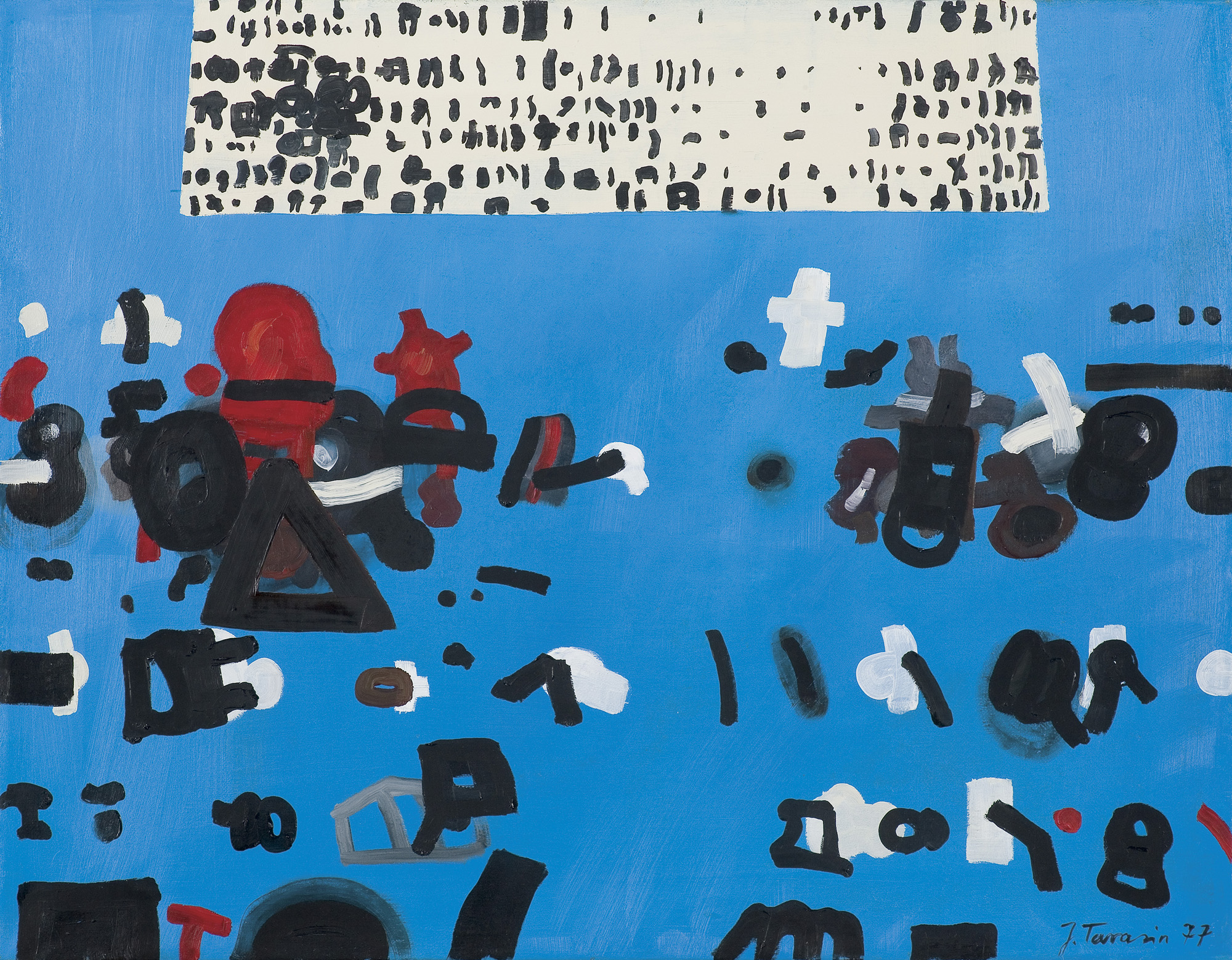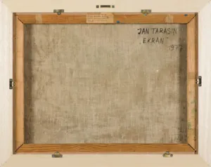 Jan Tarasin (Kalisz 11 IX 1926 - Warszawa 8 VIII 2009) studiował malarstwo w ASP w Krakowie pod kierunkiem prof. Zbigniewa Pronaszki (1946-1951). Jeszcze jako student zadebiutował na I Wystawie Sztuki Nowoczesnej w Krakowie w 1948/49. W połowie lat 50. stworzył cykle litografii: „Nowa Huta i jej mieszkańcy“, 1954, „Dom“, 1955). W pierwszym przeciwstawił się oficjalnemu optymizmowi, w drugim, operując symboliką martwej natury, zawarł treści egzystencjalne i odnoszące do niedawnego dramatu wojny. Po 1956 zaczął malować obrazy niefiguratywne. Układy wyodrębnionych elementów (określanych jako „przedmioty“) umieszczane były przez artystę na płaszczyźnie (cykl „Wnętrze“, 1957) ), lub w aluzyjnej przestrzeni (cykle „Uczta“, 1957, „Brzeg“, 1962-1964, „Przedmioty policzone“, od 1968, „Antykwariat“, 1968). Zasada ta utrzymuje się w jego malarstwie w następnych latach, różnice między okresami twórczości dotyczą sposobu opracowania „przedmiotów“ i ich usytuowania w przestrzeni obrazu lub wobec tła. Od lat 70. „przedmioty“ zmieniają się w graficzne, zwykle czarne znaki na jasnych tłach (cykl „Kolekcja“, od 1971). Tła z kolei bywają iluzyjnie przestrzenne, zróżnicowane walorowo, miękkie. W latach 90. artysta wrócił do kolorystycznego, bardziej malarskiego rozwiązywania zarówno znaków, jak i teł, często ciemnych lub przenikających się z „przedmiotami“ (cykl „Wylęgarnia przedmiotów“, 1992). Tarasin od 1962 jest członkiem „Grupy Krakowskiej“. W 1963-67 uczył na Wydziale Architektury Wnętrz krakowskiej ASP. W 1967 przeniósł się do Warszawy, w 1974 podjął pracę pedagogiczną na Wydziale Malarstwa ASP w Warszawie. W 1987-90 był rektorem tej uczelni. W 1976 otrzymał Nagrodę Krytyki Artystycznej im. Cypriana Kamila Norwida, w 1984 Nagrodę im. Jana Cybisa.; Nagroda na MB Sztuki w San Marino 1965. Równolegle z malarstwem zajmował się rysunkiem i grafiką - do lat 60. litografią, od 1974 serigrafią. W 1974-1981 wydał 8 autorskich „Zeszytów“ z serigrafiami i własnymi tekstami. W 1995 w Galerii Zachęta odbyła się wystawa artysty, której towarzyszył monograficzny katalog.