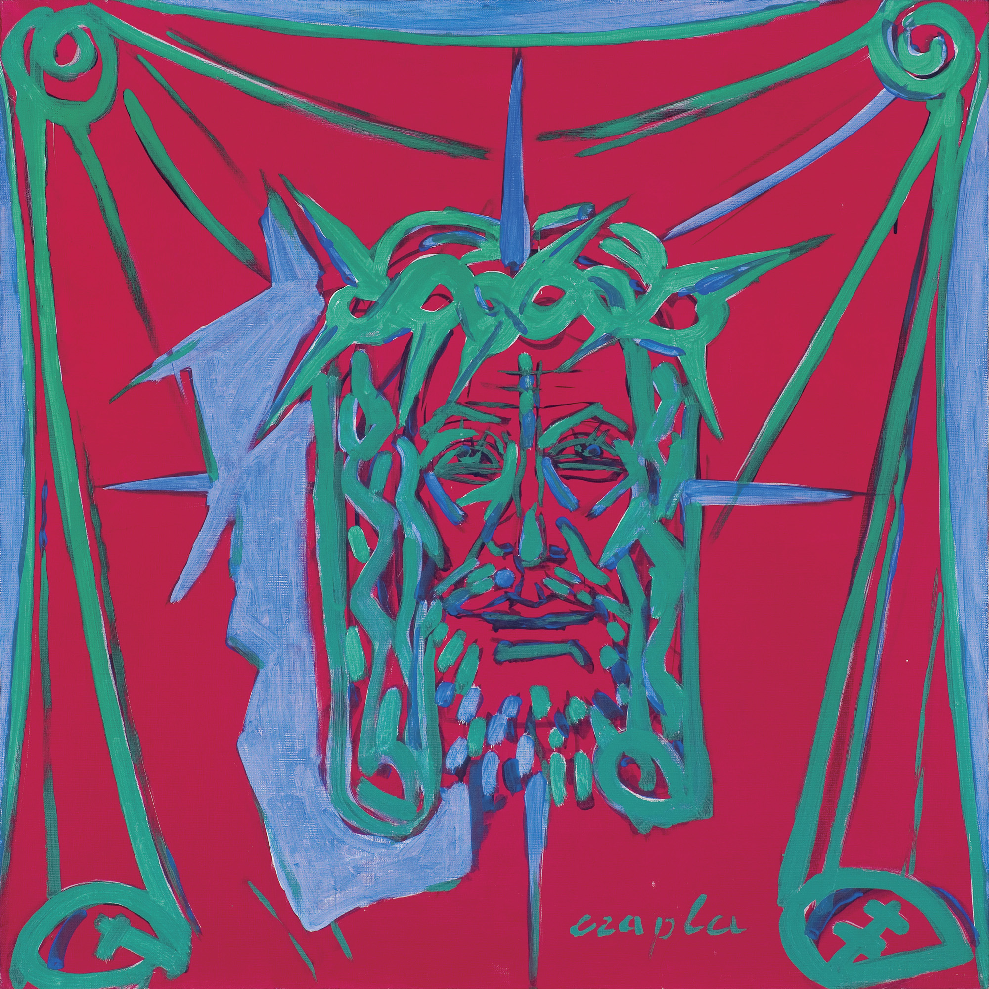 Marian Czapla (Gacki na Kielecczyźnie 28 VII 1946 - Warszawa 12 I 2016) studiował na Wydziale Malarstwa ASP w Warszawie w latach 1966-1972. Uzyskał dyplom w pracowni prof. Stefana Gierowskiego. W 1972 podjął pracę pedagogiczną w macierzystej uczelni. Od 1990 był profesorem, prowadził własną pracownię malarstwa. W latach 1974-1979 był członkiem grupy „Symplex S4“, którą tworzyło grono młodych absolwentów warszawskiej ASP, zainteresowanych możliwością kontynuowania tradycji polskiego koloryzmu z jednej, unizmu Władysława Strzemińskiego z drugiej strony. Początkowo tworzył abstrakcyjne kompozycje budowane z barwnych, zamaszyście kładzionych smug i plam. Od końca lat 70. w jego malarstwie przeważyła figuracja. Wyróżniającym się wątkiem twórczości Czapli były tematy i odniesienia religijne. Zainteresowania te pozostały aktualne w jego sztuce w latach 80., kiedy połączył je z tematyką aktualną (cykl poświęcony górnikom z „Wujka“). W pracach z lat 90. (cykle „Upadek“, „Ecce Homo“ i in.) artysta malował monumentalne figury o mocnej tektonice, podkreślonej dodatkowo zdecydowanymi barwami i konturami, ujęte w dynamicznych ruchach i skrętach ciała. Umieszczone zazwyczaj na płaskich tłach jednolitego koloru, w umownej przestrzeni, zdają się zmagać z ograniczającym je kadrem obrazu. W 2002 roku z okazji 30-lecia pracy twórczej Mariana Czapli Muzeum Narodowe w Kielcach przygotowało wystawę jego prac, której towarzyszył naukowo opracowany katalog.