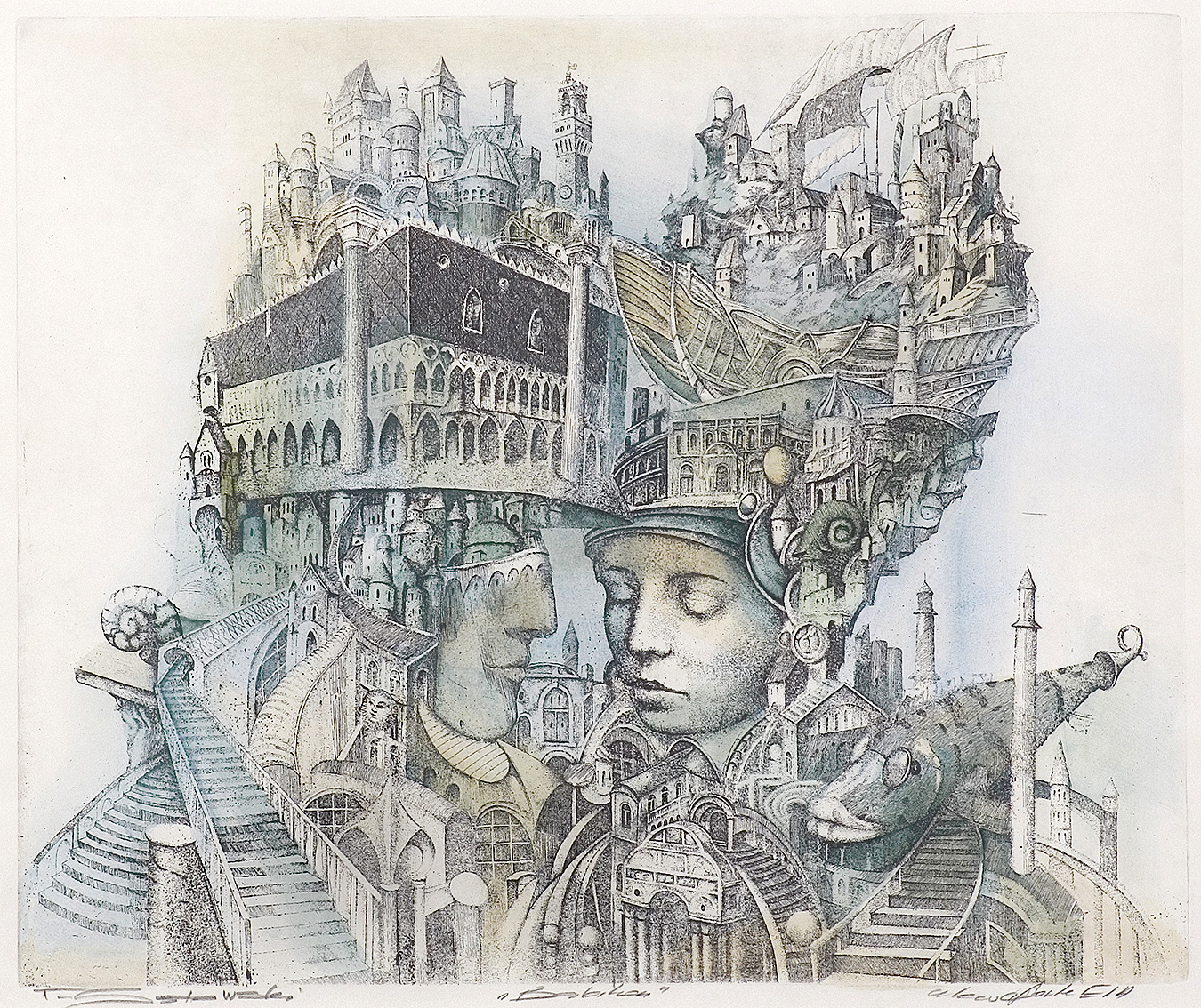 akwaforta kolorowana akwarelą, papier
