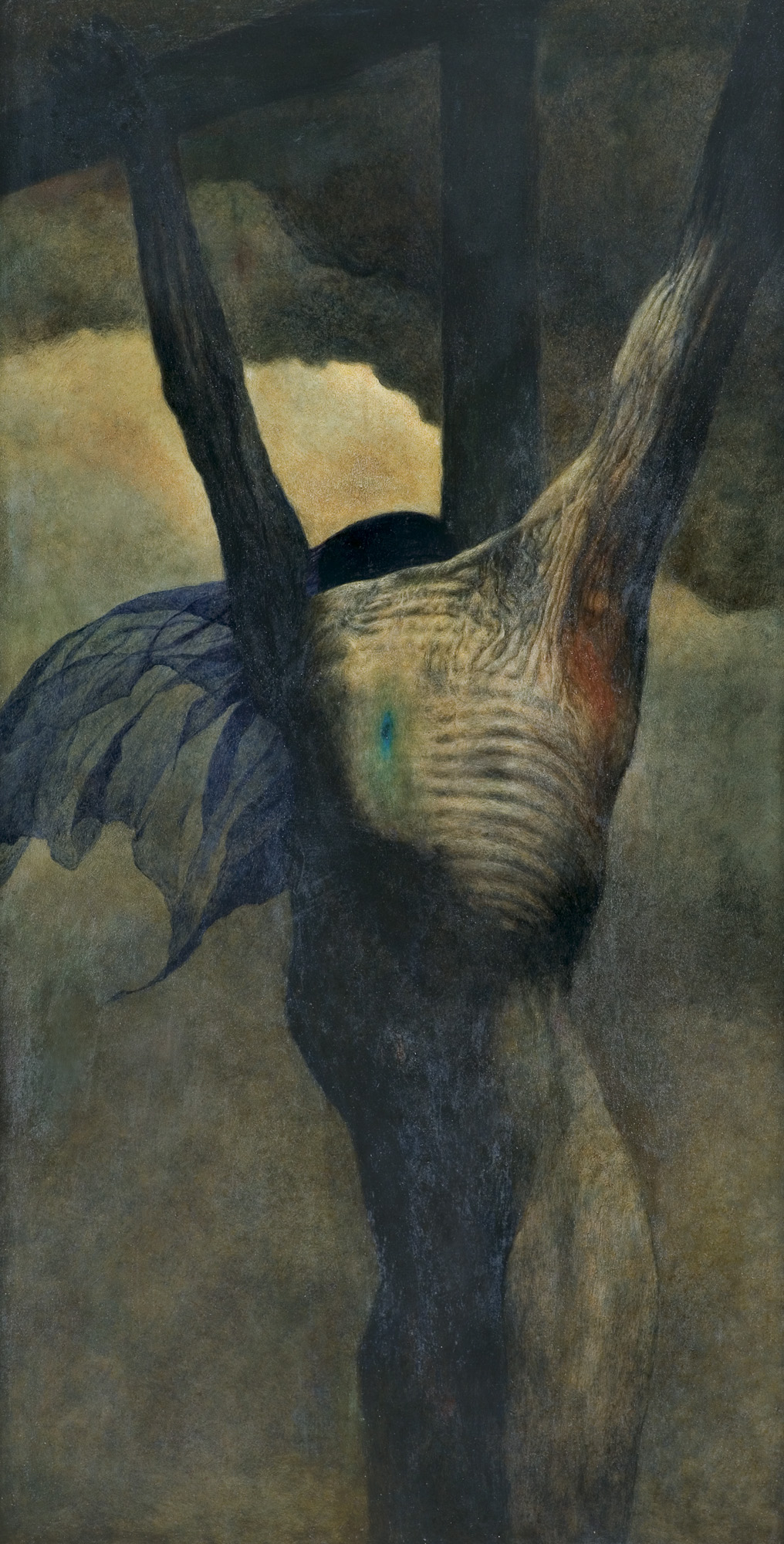 Zdzisław Beksiński (Sanok 24 II 1929 - Warszawa 21 II 2005) studiował w latach 1947-1952 na Wydziale Architektury Politechniki Krakowskiej. Był artystą samoukiem, który osiągnął niekwestionowaną pozycję w polskiej sztuce współczesnej, potwierdzoną obecnością jego prac na prestiżowych wystawach i w kolekcjach muzealnych. Początkowo zajmował się fotografią, którą interesował się od lat studenckich, po 1956 zyskując uznanie jako twórca fotogramów o estetyce opartej o efekty fakturowe. W latach 1958-1962 tworzył abstrakcyjne obrazy-reliefy o bogatej fakturze, głównie metalowe, będące odmianą malarstwa materii. Pod koniec tego okresu powstawały ażurowe formy o kształtach figur i pełnoplastyczne rzeźby w metalu. Kolejnym etapem jego twórczości były lata 1962-1974, kiedy poświęcał się głównie rysunkowi. W latach 60. rysował piórkiem i tuszem figuralne kompozycje odznaczające się karykaturalną deformacją postaci. Od końca lat 60. tworzył rysunki węglem i kredkami, będące monochromatyczną odmianą jego równoległej twórczości malarskiej. Od 1974 zajmował się niemal niepodzielnie malarstwem. Jego charakterystyczny styl bazował na perfekcji technicznej, której towarzyszyła niezwykłość wizji. Malował świat po katastrofie, naznaczony piętnem śmierci i rozpadu. Jego obrazy zaludniają postaci i stwory o ludzkich wprawdzie bądź zwierzęcych kształtach, lecz o cechach fantomów, automatów lub rozpadających się trucheł. Artysta nie nadawał swym obrazom i rysunkom tytułów (poza porządkującymi symbolami), akcentując w ten sposób swój brak zainteresowania dla literackiej strony przedstawień. Sam mówił, że malując całkowicie poddaje się wizji, „fotografuje“ ją. W ostatnich latach włączył do swego warsztatu artystycznego elektroniczne techniki generowania obrazu, które wykorzystywał do tworzenia komputerowych fotomontaży. Sztuka Beksińskiego, wielokrotnie wystawiana i omawiana, budzi skrajne emocje wśród znawców i publiczności.