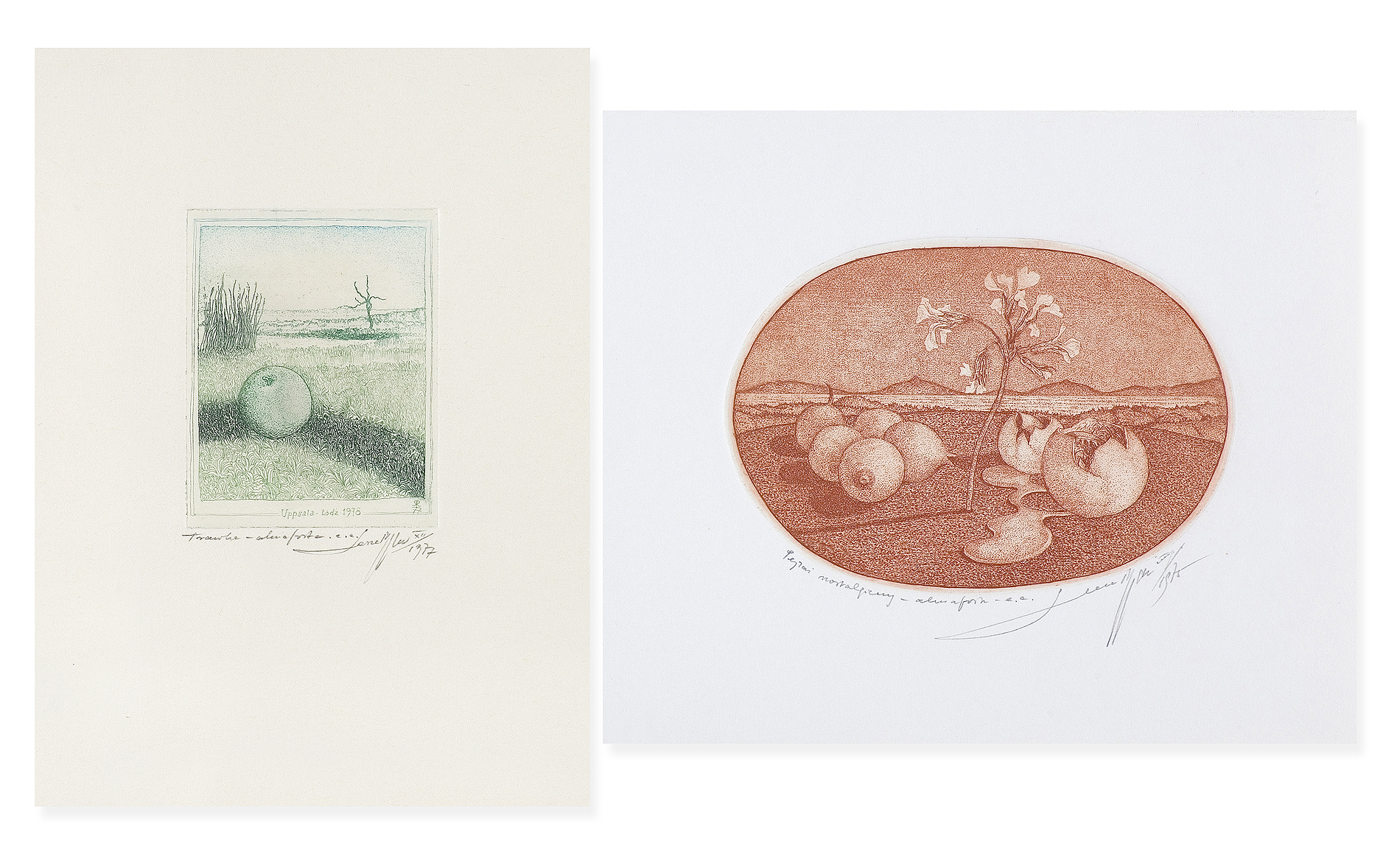 Leszek Rózga (Zgierz 1924 - Łódź 2015) - artysta grafik. W latach 1940-1945 przebywał na robotach w Niemczech, gdzie po zakończeniu wojny pracował w teatrze amatorskim i uczył się prywatnie malarstwa (1945-1947). Studiował w Państwowej Wyższej Szkole Sztuk Plastycznych w Łodzi (1948-1951) i na Wydziale Grafiki Propagandowej w Katowicach - filii ASP w Krakowie, gdzie obronił dyplom w 1954. W latach 1967-1994 był wykładowcą (od 1979 profesorem) w uczelni łódzkiej, gdzie stworzył szkołę metaforycznej, ekspresyjnej sztuki graficznej. Brał udział w licznych wystawach w kraju i za granicą, zdobywając często nagrody. Był również laureatem wielu nagród państwowych, resortowych, regionalnych itp., jak: Nagrody Ministra Kultury i Sztuki I st. 1981, 1986, 1994, Nagroda Woj. Łódzkiego 1972, Nagroda Miasta Łodzi 1985. Działał w ZPAP, był m. in. członkiem Rady Artystycznej Zarządu Głównego 1974-1976. Początkowo zajmował się głównie malarstwem, rysunkiem i monotypią, tworząc nastrojowe widoki miejskie. Od 1960 skupił się na grafice warsztatowej (głównie w technikach metalowych). W latach 70. wprowadzał do swych kompozycji werystycznie odwzorowane rośliny i owoce, inskrypcje, cytaty ze sztuki klasycznej.