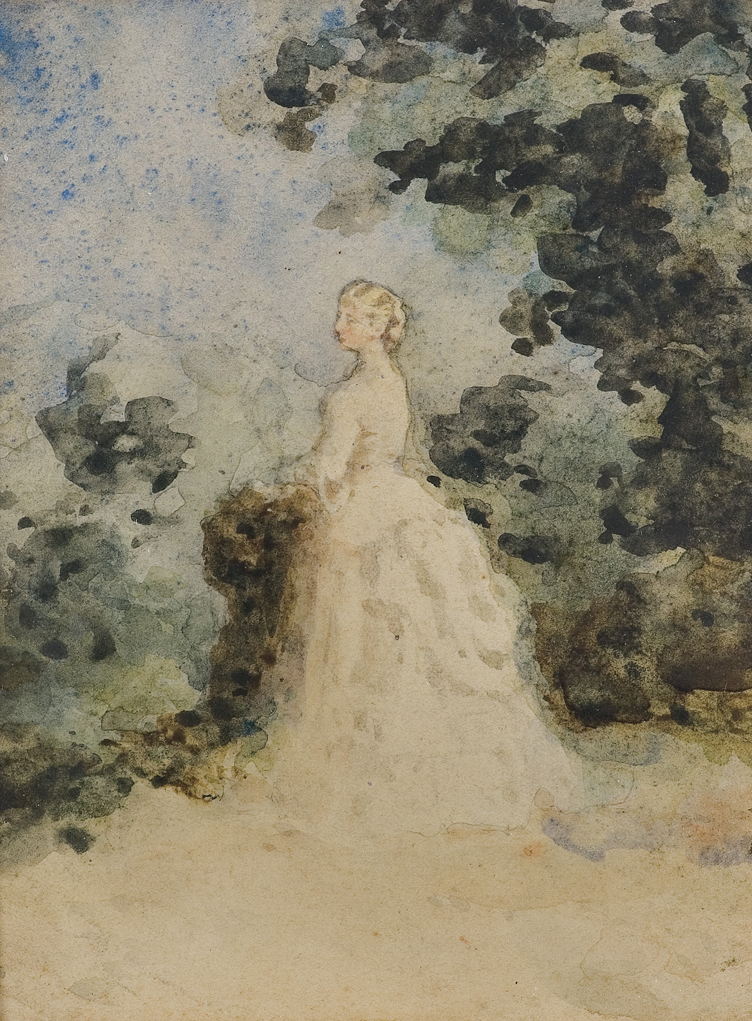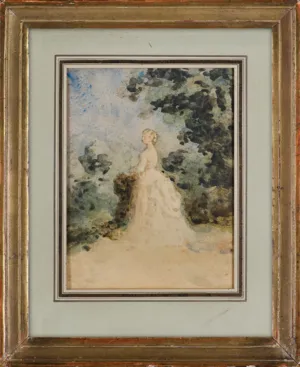Teofil Kwiatkowski (Pułtusk 1809 - Avallon w Burgundii 1891) - wybitny przedstawiciel romantyzmu w malarstwie polskim - w latach 1825-1830 studiował malarstwo na Oddziale Sztuk Pięknych Uniwersytetu Warszawskiego u A. Brodowskiego i A. Blanka. Jako oficer 4. pułku piechoty walczył w powstaniu listopadowym; po klęsce jego emigrował do Francji, gdzie pozostał do końca życia. początkowo przebywał w Avignonie, później w Paryżu. Tu studiował jeszcze u A. Toussainta, P. Sentiesa, J. L. Dulonga i L. Cognieta. Utrzymywał bliskie kontakty ze środowiskiem emigracyjnym, m.in. z rodziną ks. Czartoryskich, Adamem Mickiewiczem, Fryderykiem Chopinem, Cyprianem Kamilem Norwidem, Teofilem Lenartowiczem. Wielokrotnie portretował Chopina (także na łożu śmierci), któremu poświęcił też dużą, symboliczną kompozycję Bal w Hôtel Lambert - Polonez Chopina. Malował piękne, przesycone romantyczną aurą krajobrazy z Prowansji i Burgundii. Malował obrazy olejne i bardzo liczne, mistrzowskie akwarele – portrety, pejzaże, sceny rodzajowe, patriotyczne, kostiumowe i alegoryczne. Jego dzieła odznaczają się niepoślednimi walorami kolorystycznymi, emocjonalnym stosunkiem do natury, a także typowo romantyczną skłonnością do fantazji i metafory, zabarwionej często odcieniem melancholii. Artysta wystawiał, m.in. na oficjalnych Salonach paryskich (1839-1881), nadsyłał swe prace także na wystawy krajowe (1862-1873 TZSP w Warszawie). Jego obrazy, akwarele, rysunki znajdują się w Muzeum Mickiewicza w Paryżu, w zbiorach Muzeów Narodowych w Warszawie, Krakowie i Poznaniu, pozostałe są w rękach prywatnych we Francji. Na rynku antykwarskim są rzadkością.