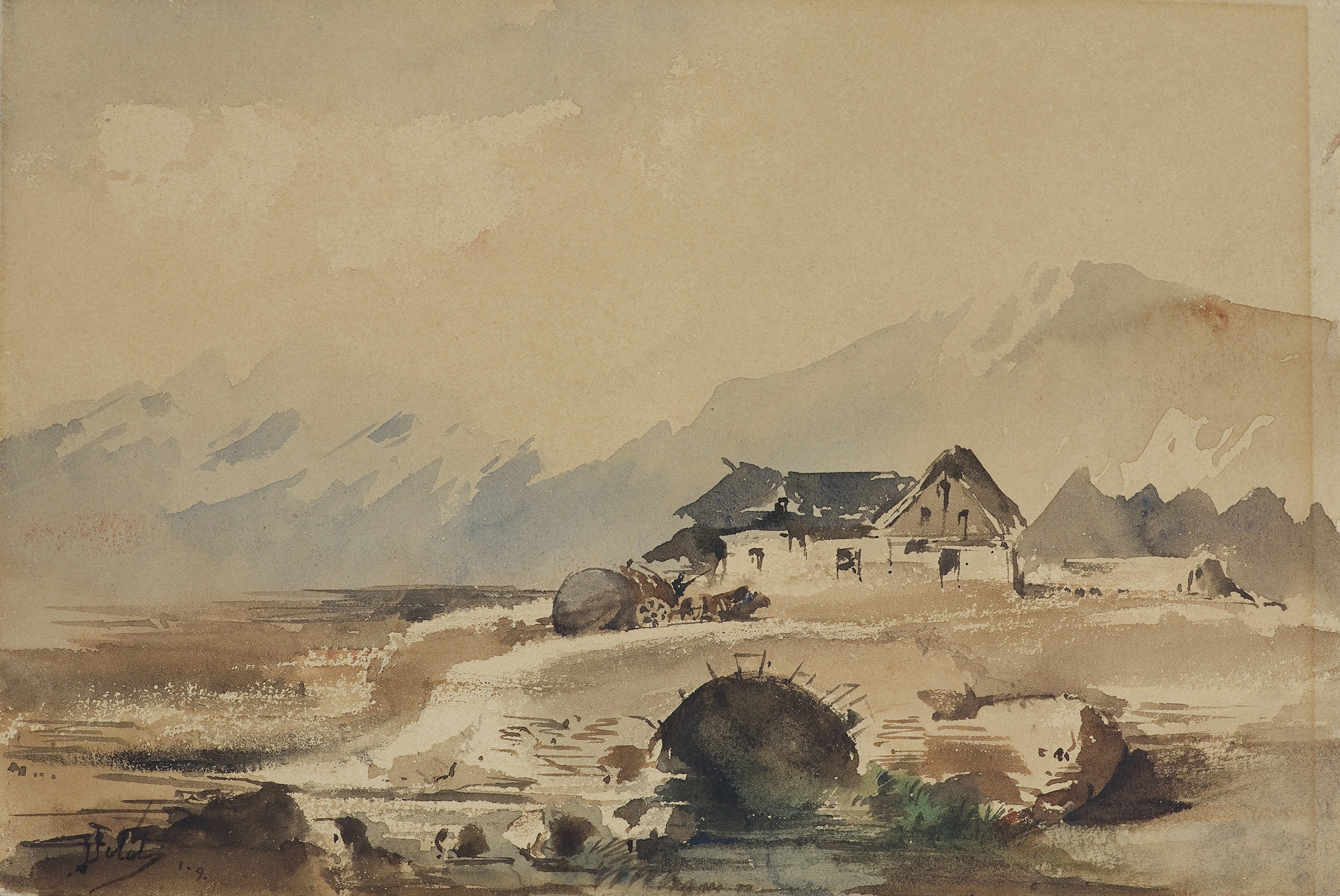 Julian Fałat (Tuligłowy [okręg lwowski] 1853 - Bystra k. Bielska 1929) - malarz i pedagog - jeden z najwybitniejszych artystów polskich okresu przełomu XIX i XX wieku, członek polskich i europejskich stowarzyszeń twórczych oraz Królewskiej Akademii Sztuk Pięknych w Berlinie, wielokrotnie odznaczany medalami na wystawach międzynarodowych. Studiował malarstwo u Władysława Łuszczkiewicza i Leona Dembowskiego w Szkole Sztuk Pięknych w Krakowie (1868-71 i 1881) i w Akademii Sztuk Pięknych w Monachium u Alexandra Strähubera i Johana Leonhardta Raaba (1877-80). Po studiach spędził kilka miesięcy w Rzymie, w 1884 był w Paryżu i w Hiszpanii, a w 1885 odbył podróż morską dookoła świata. W 1886 podczas polowania u ks. Radziwiłłów w Nieświeżu poznał późniejszego cesarza Niemiec Wilhelma II - dla którego następnie w latach 1886-95 pracował w Berlinie jako malarz nadworny. W latach 1894-96 współpracował z Wojciechem Kossakiem przy panoramie Berezyna. W 1895 został powołany na stanowisko dyrektora Szkoły Sztuk Pięknych w Krakowie, w której gruntownie zreformował system nauczania, przekształcając tę uczelnię w nowoczesną Akademię Sztuk Pięknych (r.1900). Do roku 1910 był rektorem Akademii; po przejściu na emeryturę osiadł w miejscowości Bystra k. Bielska. Znakomity akwarelista, malował także olejno. We wcześniejszym okresie tworzył w konwencji realistycznej, z czasem rozjaśnił i wzbogacił paletę, a w akwarelach wprowadzał rozlewną plamę barwną. Zasłynął jako malarz scen myśliwskich rozgrywających się najczęściej w zimowej scenerii; malował też pejzaże, wiejskie sceny rodzajowe, portrety, widoki miejskie.