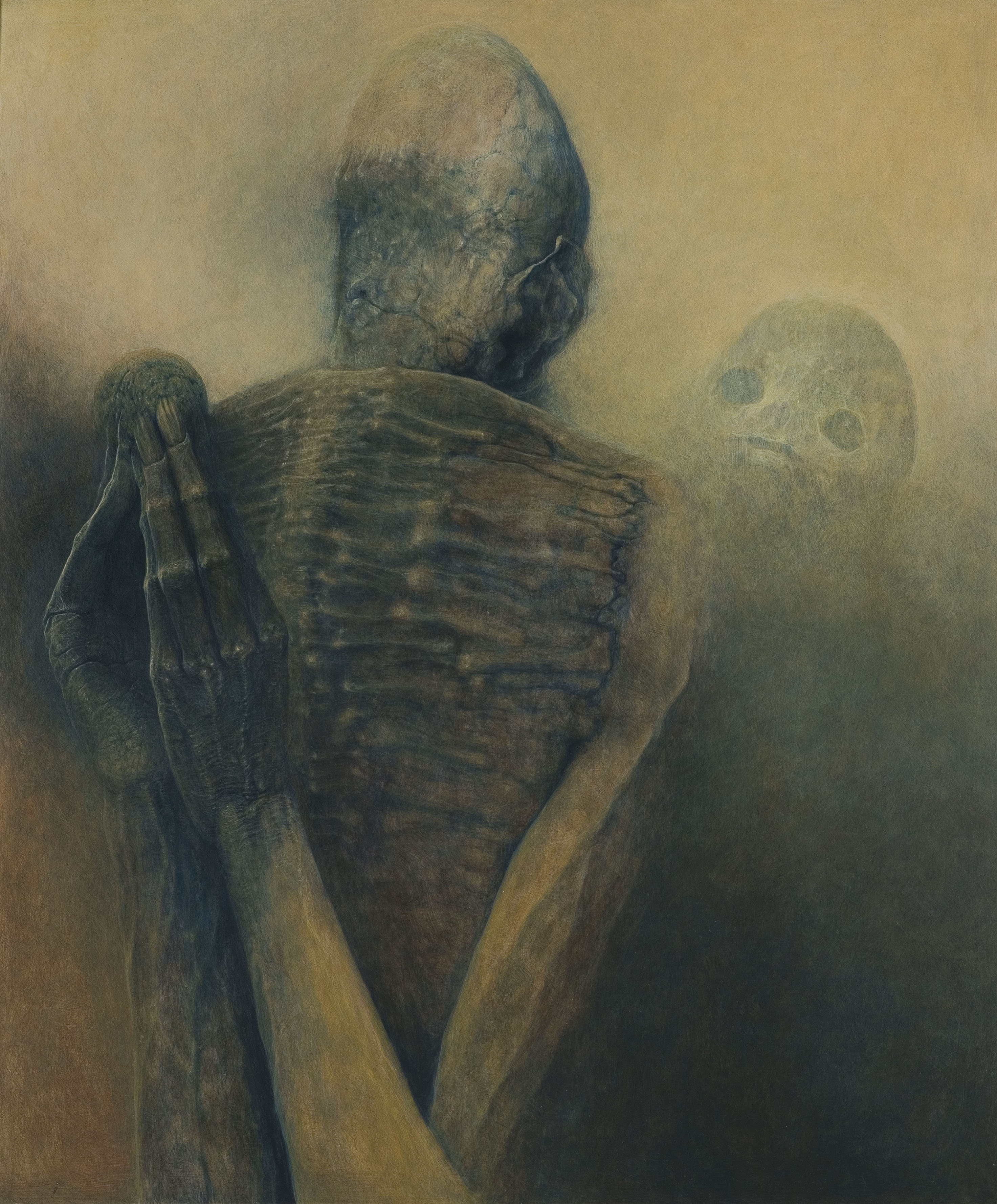 Zdzisław Beksiński (Sanok 24 II 1929 - Warszawa 21 II 2005) studiował w latach 1947-1952 na Wydziale Architektury Politechniki Krakowskiej. Był artystą samoukiem, który osiągnął niekwestionowaną pozycję w polskiej sztuce współczesnej, potwierdzoną obecnością jego prac na prestiżowych wystawach i w kolekcjach muzealnych. Początkowo zajmował się fotografią, którą interesował się od lat studenckich, po 1956 zyskując uznanie jako twórca fotogramów o estetyce opartej o efekty fakturowe. W latach 1958-1962 tworzył abstrakcyjne obrazy-reliefy o bogatej fakturze, głównie metalowe, będące odmianą malarstwa materii. Pod koniec tego okresu powstawały ażurowe formy o kształtach figur i pełnoplastyczne rzeźby w metalu. Kolejnym etapem jego twórczości były lata 1962-1974, kiedy poświęcał się głównie rysunkowi. W latach 60. rysował piórkiem i tuszem figuralne kompozycje odznaczające się karykaturalną deformacją postaci. Od końca lat 60. tworzył rysunki węglem i kredkami, będące monochromatyczną odmianą jego równoległej twórczości malarskiej. Od 1974 zajmował się niemal niepodzielnie malarstwem. Jego charakterystyczny styl bazował na perfekcji technicznej, której towarzyszyła niezwykłość wizji. Malował świat po katastrofie, naznaczony piętnem śmierci i rozpadu. Jego obrazy zaludniają postaci i stwory o ludzkich wprawdzie bądź zwierzęcych kształtach, lecz o cechach fantomów, automatów lub rozpadających się trucheł. Artysta nie nadawał swym obrazom i rysunkom tytułów (poza porządkującymi symbolami), akcentując w ten sposób swój brak zainteresowania dla literackiej strony przedstawień. Sam mówił, że malując całkowicie poddaje się wizji, „fotografuje“ ją. W ostatnich latach włączył do swego warsztatu artystycznego elektroniczne techniki generowania obrazu, które wykorzystywał do tworzenia komputerowych fotomontaży. Sztuka Beksińskiego, wielokrotnie wystawiana i omawiana, budzi skrajne emocje wśród znawców i publiczności.