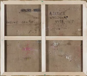 Alfred Lenica (Pabianice 1899 - Warszawa 1977) uczył się prywatnie rysunku i malarstwa w pracowniach Artura Hannytkiewicza i Piotra Kubowicza w Poznaniu (1925-1928). W latach 30. malował obrazy figuratywne, nawiązujące w stylistyce do kubizmu. Nieco później uległ wpływom surrealizmu, który, pomijając lata socrealizmu, stanie się dlań najpoważniejszym obszarem poszukiwań malarskich. Od połowy lat 40. utrzymywał stałe kontakty z kręgiem „Grupy Krakowskiej“, przyjaźnił się z Jerzym Kujawskim. Po przeniesieniu się do Poznania, w 1947 został współzałożycielem awangardowej grupy „4F+R“ (farba, forma, fantastyka, faktura + realizm). Jest autorem pierwszego polskiego obrazu taszystowskiego (Farby w ruchu, 1949, tempera). W okresie socrealizmu włączył się w nurt oficjalnej sztuki, pracując jednocześnie jako organizator życia artystycznego, prezes Okręgu Poznańskiego ZPAP (1948-1950) i jednocześnie kierownik Pracowni Sztuk Plastycznych tamże. W końcu lat 50. przeniósł się do Warszawy i również tu do 1969 pełnił kierownicze funkcje w ZPAP. W drugiej poł. lat 50. ponownie - po eksperymentach z lat 40. - uprawiał informel, malując chętnie techniką drippingu. Około 1958 wypracował indywidualny, charakterystyczny dlań styl wirujących, kolorowych, niekiedy kaligraficznie opracowanych form, które dynamicznie wypełniały pola obrazów. Tworzył je techniką zbliżoną do surrealistycznej dekalkomanii. Styl ten stał się znakiem rozpoznawczym artysty do końca życia. W swych obrazach nie unikał kształtów nawiązujących do form naturalnych (jego malarstwo nazywano „biologicznym“), a w latach 70. niekiedy włączał do kompozycji motywy figuralne. Wystawa retrospektywna artysty odbyła się w Galerii Zachęta w Warszawie w 1974.