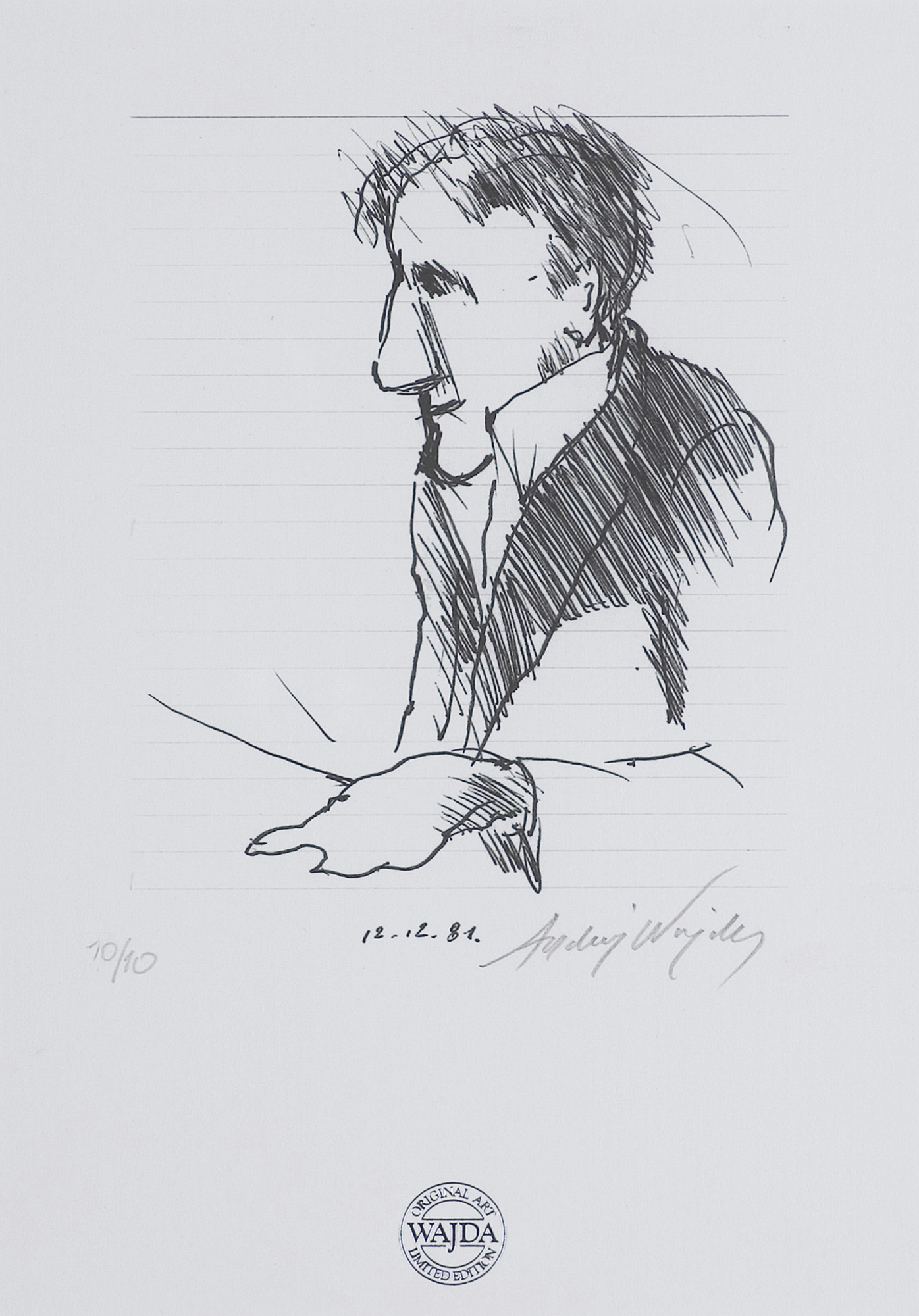 Andrzej Wajda (Suwałki 1926 – Warszawa 2016)- jeden z najwybitniejszych i najbardziej znanych polskich reżyserów. Twórca "polskiej szkoły filmowej". W czasie wojny uczęszczał w Radomiu na tajne komplety, a także rozpoczął naukę malarstwa. Według własnych wspomnień wojnę spędził w domu braci ojca w Krakowie, gdzie też przez pewien czas pobierał nauki malarstwa. Po zakończeniu wojny, w latach 1946-1950 studiował malarstwo na Akademii Sztuk Pięknych w Krakowie, by następnie przenieść się na reżyserię w Szkole Filmowej w Łodzi. W jednym z wywiadów mówi: „nie maluję, ale dużo rysuje, notując w ten sposób, to co mnie otacza. Jest to najlepsza metoda zapamiętywania”. W 1997 roku został członkiem francuskiej Akademii Sztuk Pięknych, na miejsce Federico Felliniego.