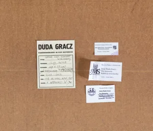 – po prawej: nalepka wystawowa [druk]: MUZEUM MIEJSKIE WROCŁAWIA | Jerzy Duda Gracz – Pro memoria | Wrocławska kolekcja | 8 I – 13 II 2005 r., poniżej pieczątka muzealna;