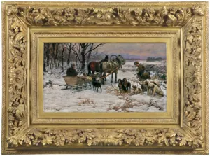 Genezę zamiłowania Wierusza do zimowych pejzaży przeanalizował H. P. Bühler. Uważał on, że cofnąć się trzeba do okresu pobytu malarza w Dreźnie, dokąd przybył on mając lat zaledwie dwadzieścia, w roku 1869. Przypadek zrządził, że na wystawie sztuki Akademii Drezdeńskiej młody artysta natknął się na obrazy, które wprawdzie nie wpłynęły decydująco na jego późniejszą twórczość, ale stanowiły istotny czynnik w ewolucji malarskich zainteresowań. Były to pejzaże zimowe Nikołaja Swierczkowa, ożywione elementami rosyjskiego folkloru. Płótna Swierczkowa przedstawiają najczęściej pędzące sanie, zaprzężone w trzy konie, tzw. trojkę. Scenie dodaje uroku pomarańczowa lub purpurowa poświata zachodu na linii horyzontu. Jest to przykład typowego dla artystów rosyjskich zastosowania kontrastu jaskrawych i kremowych barw pejzażu, co przypomina nieco ówczesnych malarzy-orientalistów i ich widoki znad Nilu. Z pewnością Wierusz-Kowalski zauroczony był płótnami petersburskiego artysty. (...) Dwaj polscy malarze, Alfred Wierusz-Kowalski i jego nauczyciel - Józef Brandt, przeformułowali rosyjski wzorzec krajobrazu zimowego. W ten sposób powstał słynny „polski pejzaż zimowy“.