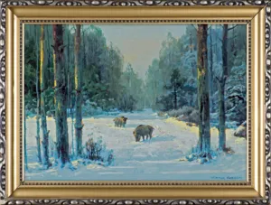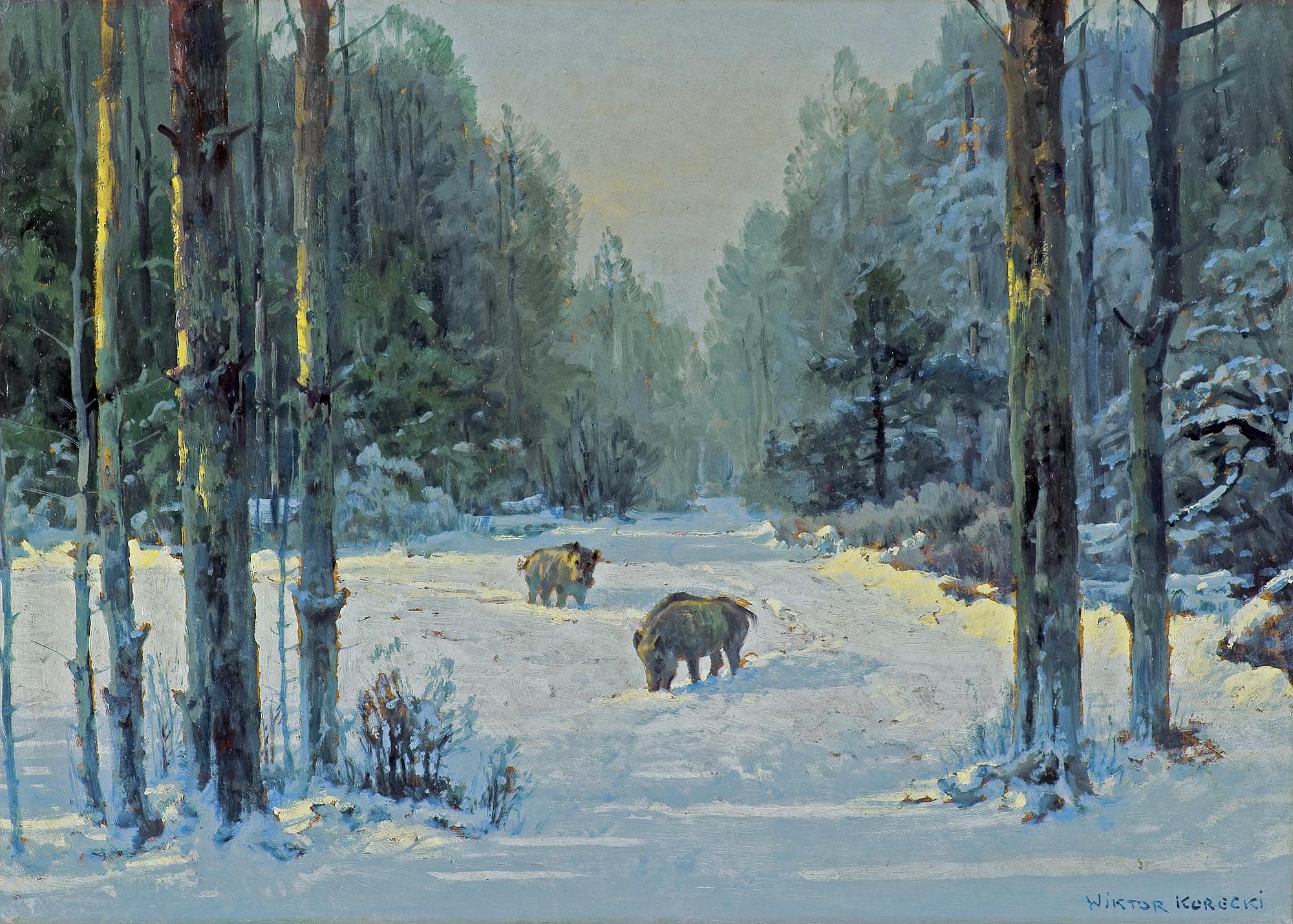Wiktor Korecki (Kamieniec Podolski 1890 - Komorów k. Warszawy 1980) - malarz pejzażysta - gimnazjum ukończył w Kijowie, tam też studiował w Szkole Rysunkowej Aleksandra Muraszki. Po studiach wrócił do Kamieńca Podolskiego, skąd w roku 1921 wyjechał do Warszawy. Tu miał pracownię na rogu ulic Tamki i Cichej. Niestety zgromadzone tam obrazy spłonęły w czasie powstania 1944 roku. Po powstaniu artysta przebywał w obozie w Pruszkowie skąd trafił do obozu pracy w Lipsku. Do kraju powrócił w roku 1946 i zamieszkał w Komorowie pod Warszawą, a później w Milanówku. Jego nastrojowe krajobrazy emanujące spokojem i pogodą cieszyły się zawsze dużą popularnością. Korecki najczęściej malował pejzaże zimowe z motywem leśnej drogi i strumienia wijącego się wśród śniegów, a obok nich także wiosenne, letnie czy jesienne widoki z Mazowsza.